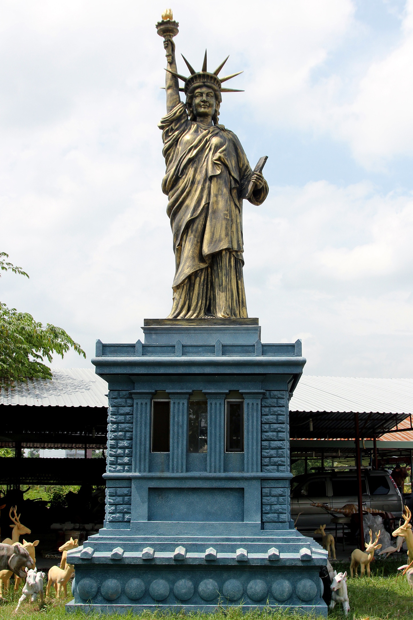 Một cơ sở điêu khắc ở Củ Chi, TP.HCM đã làm ra bức tượng Nữ thần tự do rồi bày trên cánh đồng chờ khách với giá 10.000 USD. Đây còn là xưởng sản xuất các loại tượng bằng xi măng.