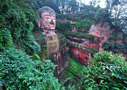Người ta bắt đầu xây dựng tượng Lạc Sơn Đại Phật năm 713 và hoàn thành 90 năm sau đó. Đá thừa trong quá trình khoét núi dựng tượng Phật được thả xuống sông. Chúng làm thay đổi dòng chảy của nước, khiến nó trở nên hiền hòa hơn. Ảnh: therichest.com. |