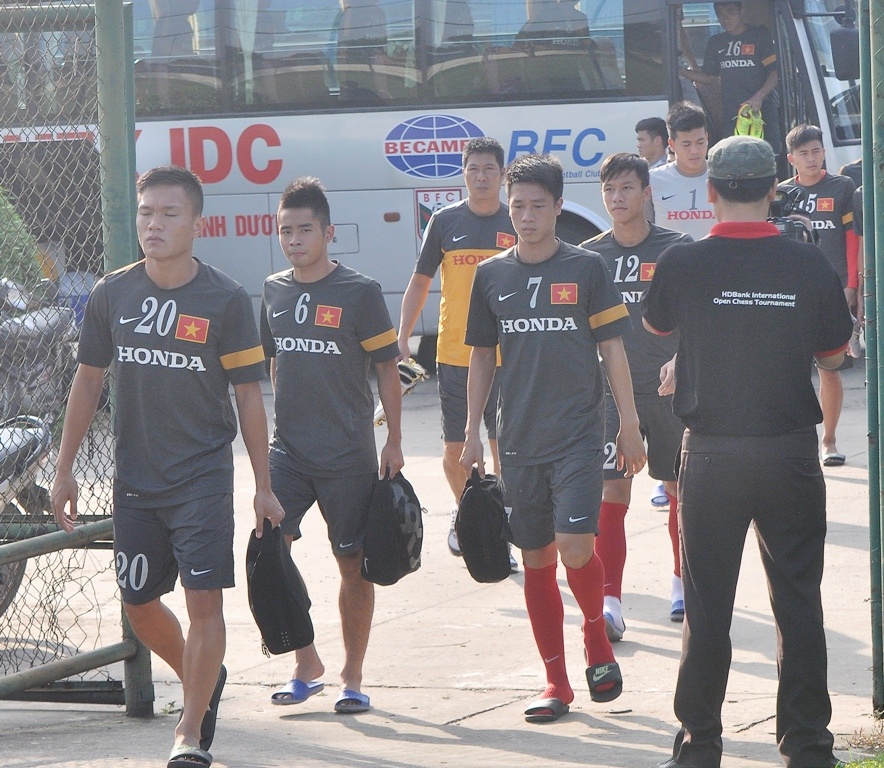| Buổi tập chiều nay bắt đầu từ lúc 15h30, không có đại diện của VFF cũng như nguyên Trưởng đoàn Trương Hải Tùng. |