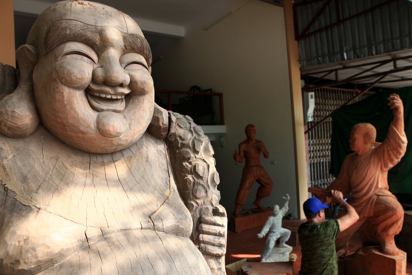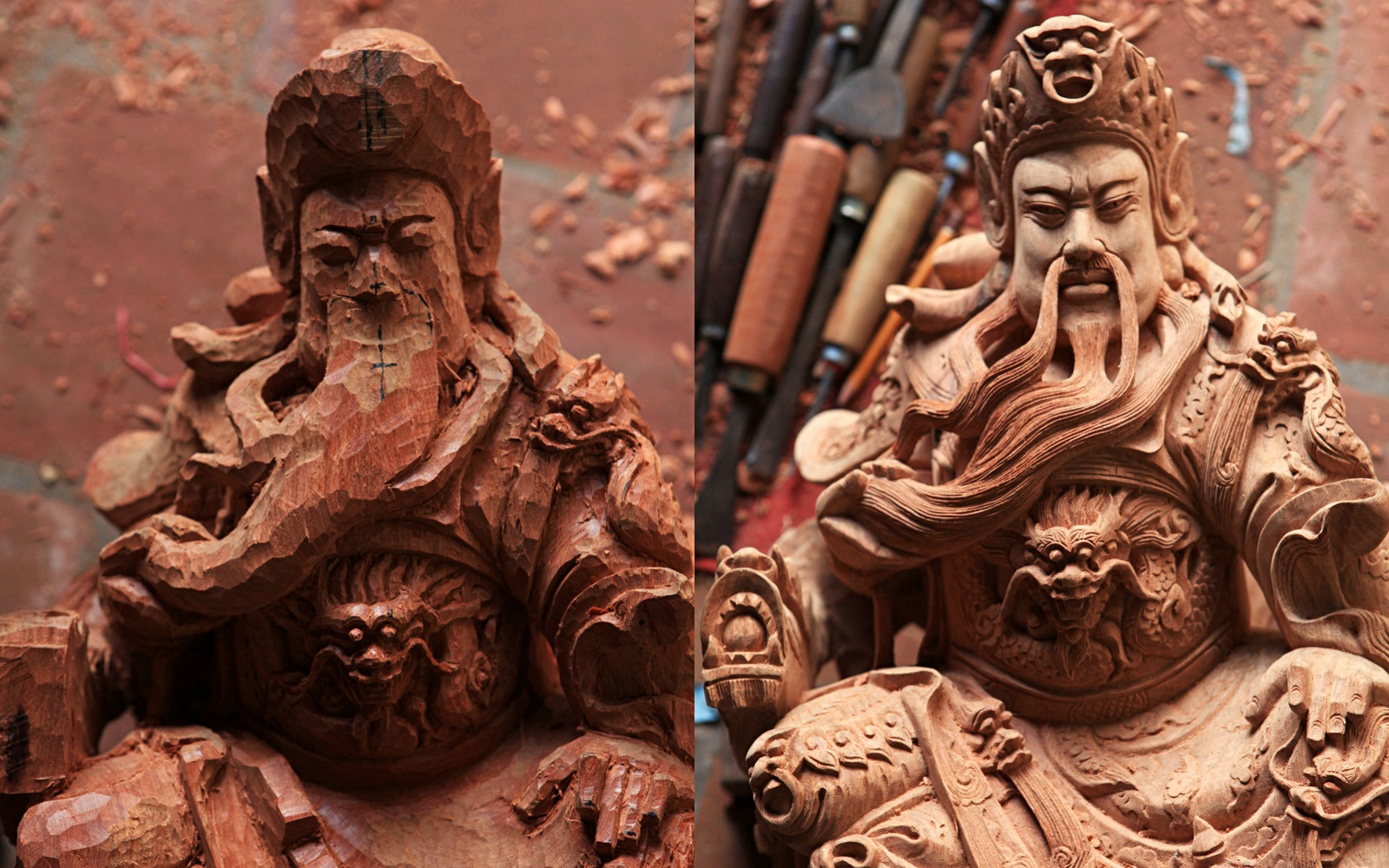 Trong ảnh là phiên bản giữa tượng gốc và tượng nhân bản sau khi quét máy tính và đưa vào máy. Trên thị trường, một bức tượng Quan Công có giá dao động từ vài triệu đồng đến vài chục triệu đồng, tùy kích cỡ và loại gỗ.