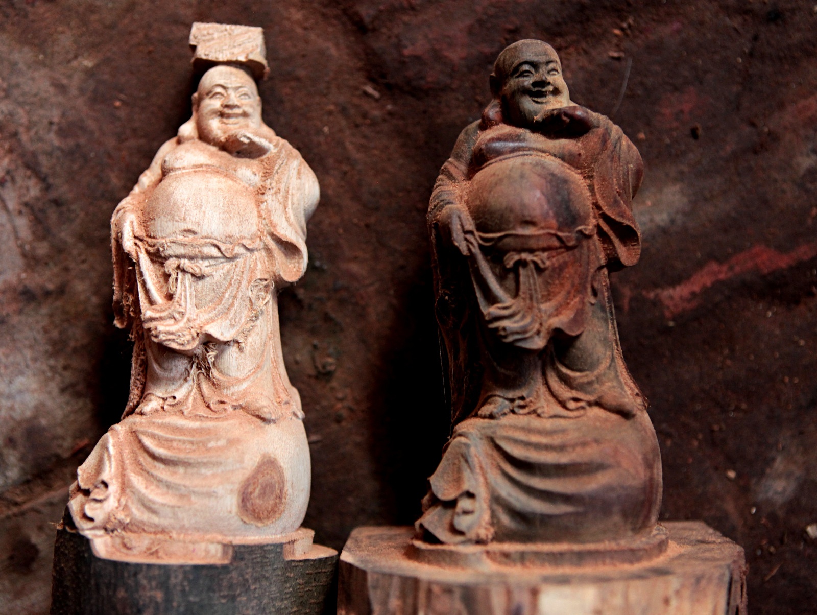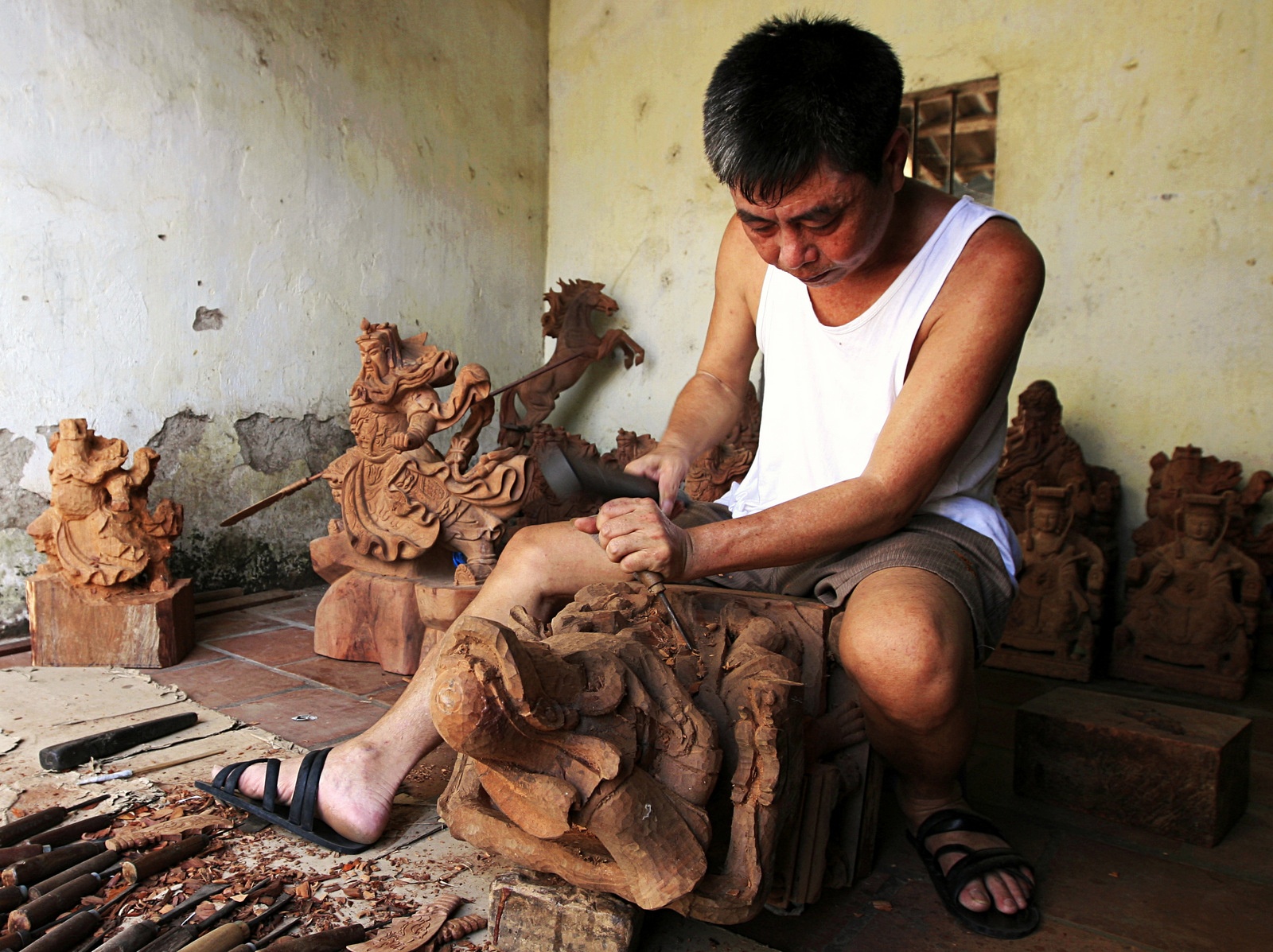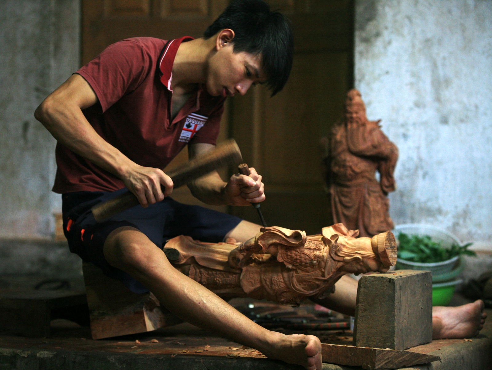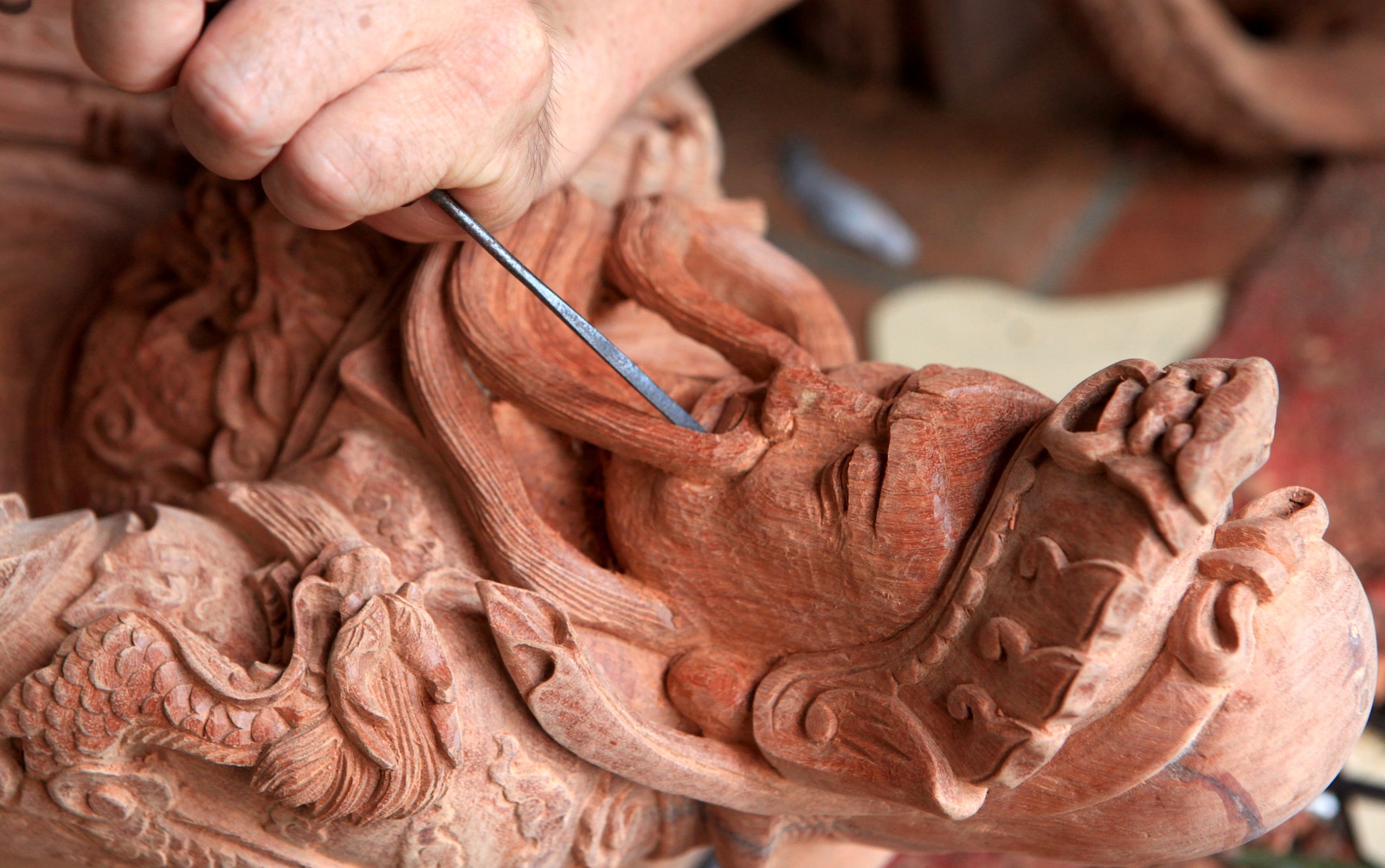 Công đoạn chính phải cần đến bàn tay con người là việc đục đẽo các chi tiết hoa văn trên tượng làm sao cho giống y như bản gốc.