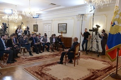 - Về mặt pháp lý, mỗi quốc gia chỉ có một tổng thống hợp pháp. Rõ ràng đến thời điểm này, ông Yanukovych bị lật đổ không còn quyền lực. Tuy nhiên, tôi muốn nhắc lại rằng, tổng thống hoàn toàn hợp pháp tại Ukraina chỉ có thể là ông Yanukovych. Theo quy định của hiến pháp, ông ấy chỉ mất chức khi chết, từ chức hoặc bị luận tội. Tôi đã khuyên ông ấy không nên di chuyển tất cả các đơn vị cảnh sát ra khỏi thủ đô nhưng ông không nghe. Điều này dẫn đến cuộc hỗn loạn như hiện nay. Tôi nghĩ rằng ông Yanukovych không còn tương lai chính trị. Chúng tôi đón nhận Yanukovych ở Nga vì lý do nhân đạo. Ông ấy sẽ bị giết nếu ở lại Ukraina.