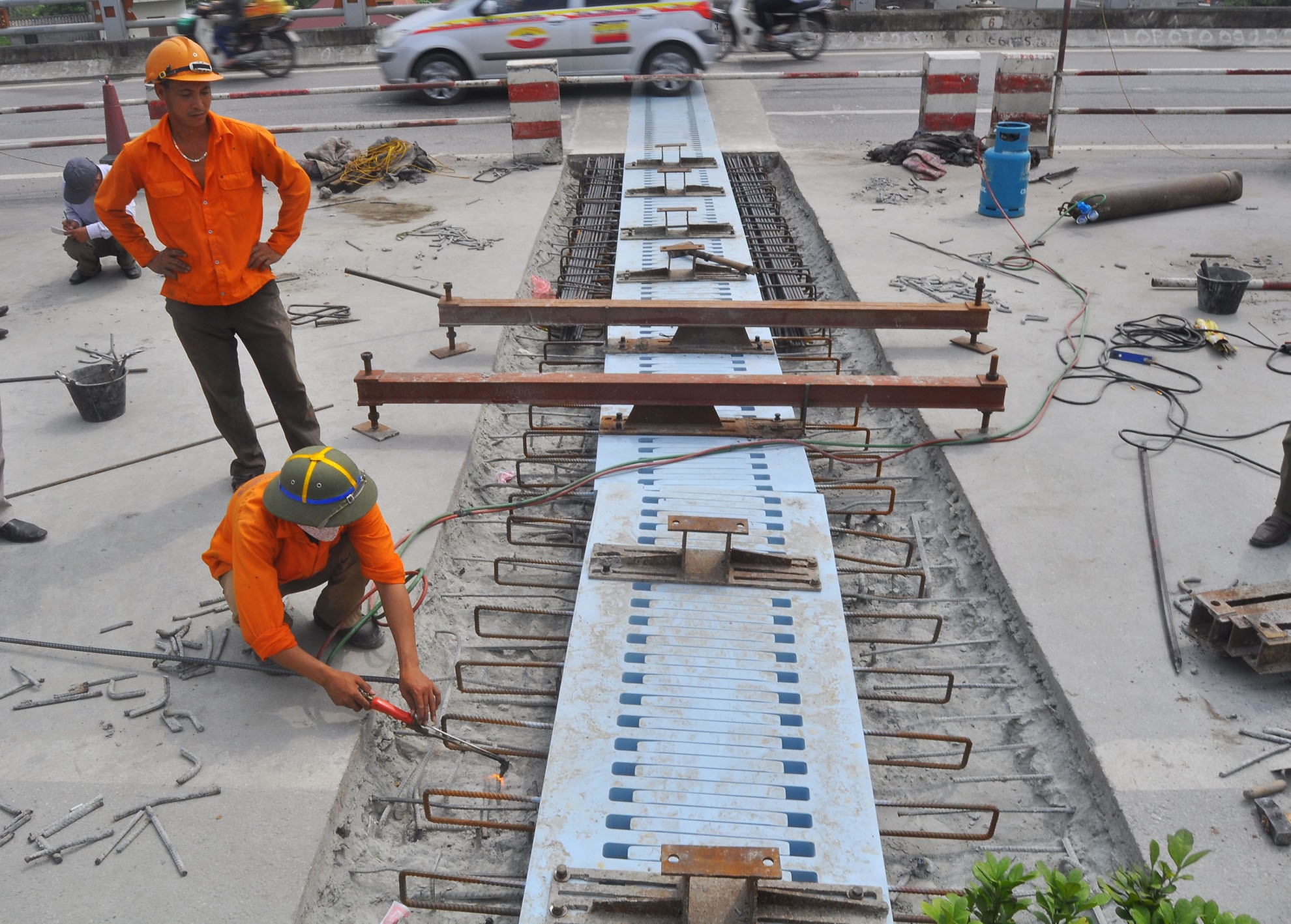 Một điểm đệm bị lún trên cầu Thanh Trì được nhóm công nhân sửa chữa vào cuối tháng 10. Ông Phạm Anh Tú, Trưởng phòng dự án 1 – Ban quản lý dự án Thăng Long, cho hay, các vết hằn lún trên chắc chắn ảnh hưởng tới tiến độ lưu thông, vận tải của phương tiện. Năm 2009, đơn vị thi công đã tu sửa bảo hành một lần từ nguồn quỹ của nhà thầu. Song, từ khi hết bảo hành tới nay, tuyến đường chưa được tu sửa thêm lần nào nữa. |
