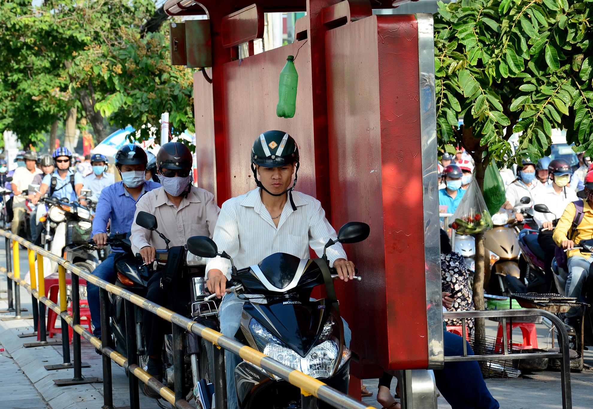 | Nhiều người không chỉ leo lên vỉa hè mà còn tìm cách luồn lách vào qua những chỗ hẹp để vượt lên trước. Theo một CSGT, do Trường Chinh là tuyến đường vào trung tâm thành phố của nhiều quận, huyện nên lưu lượng xe cộ vào giờ cao rất lớn. Tuyến đường lại không đồng bộ, bị thắt cổ chai nên dễ xảy ra ùn ứ, dù luôn có lực lượng cảnh sát túc trực. |