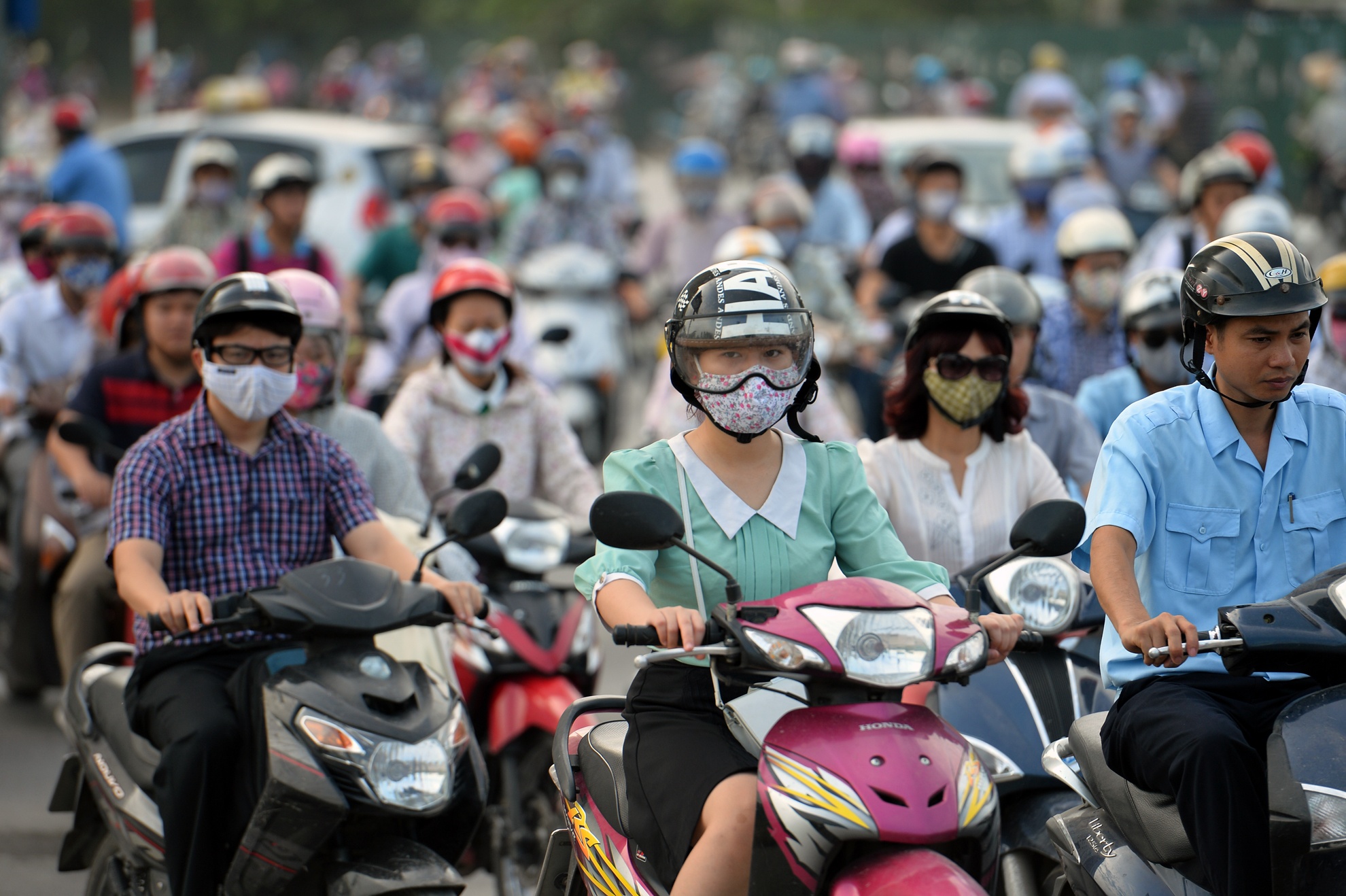| Nhiều chị em phụ nữ lẫn các đấng mày râu dù ngồi trên xe máy cũng phải nhích từng bước đến công sở. |