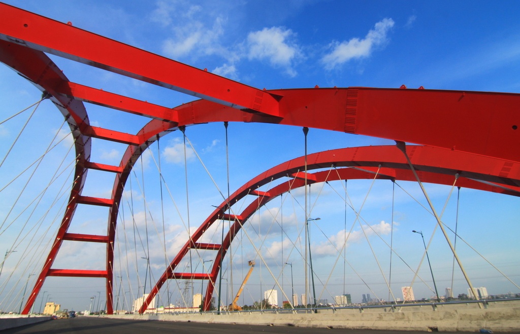 | Cầu dài 1.100m, 8 làn xe, là cây cầu vòm thép lớn nhất Việt Nam. Hai mái vòm mang kiến trúc cầu vòm Nielsen, do một công ty Hàn Quốc thiết kế. |
