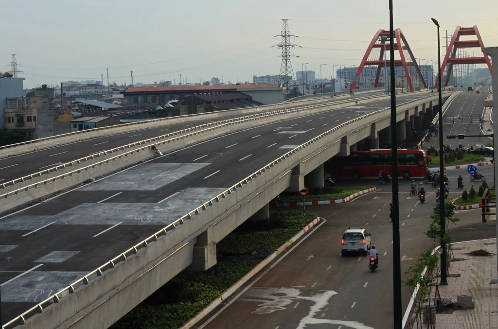 | Điểm đầu của tuyến từ nút giao thông gần sân bay Tân Sơn Nhất chờ ngày thông xe, trong khi đó đoạn từ Q.Thủ Đức đến điểm cuối là nút giao thông Linh Xuân vẫn đang được thi công. |