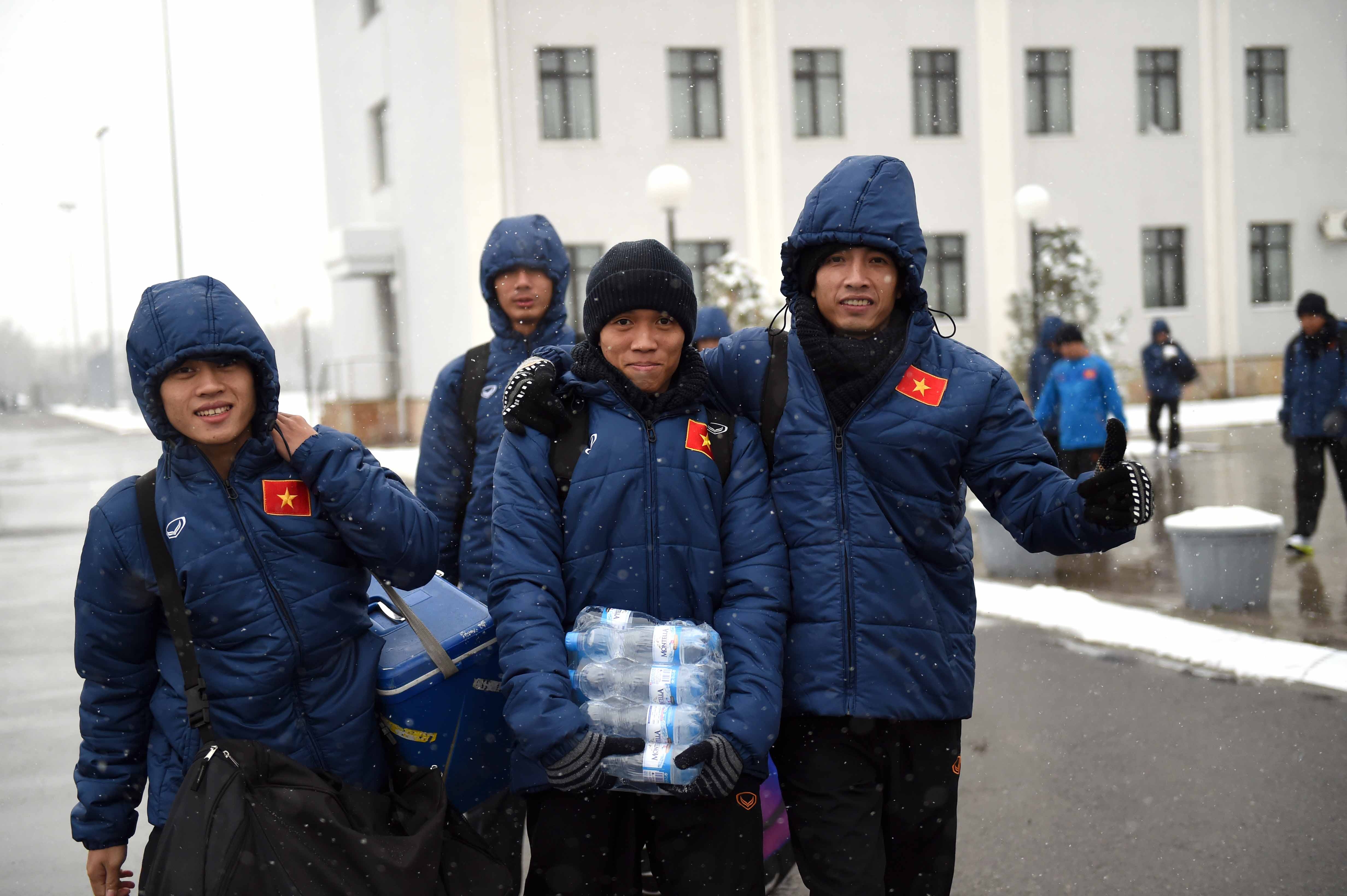 | Toàn đội được ban tổ chức bố trí ở trại khách sạn 4 sao Uzbekistan. Năm 2011, đội từng lưu trú tại đây khi sang đá giao hữu nên không quá bỡ ngỡ. Trở ngại lớn nhất của Bruno Garcia và các học trò là thời tiết. Nhiệt độ ngoài trời luôn dưới 0 độ C, tuyết bao phủ trắng xóa. Điều này khiến các cầu thủ phải mất vài ngày để kịp thích nghi trước khi bước vào thi đấu. |