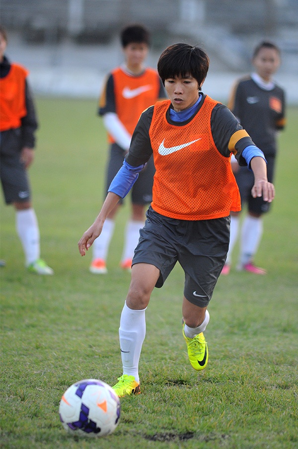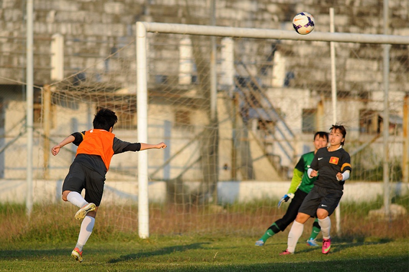 Cuối buổi tập, HLV Trần Vân Phát chỉ đạo các học trò tập đá 11m. Các cô gái đã thực hiện khá bài bản và lạnh lùng các pha dứt điểm từ chấm penalty và hầu như các pha sút đều thành công.