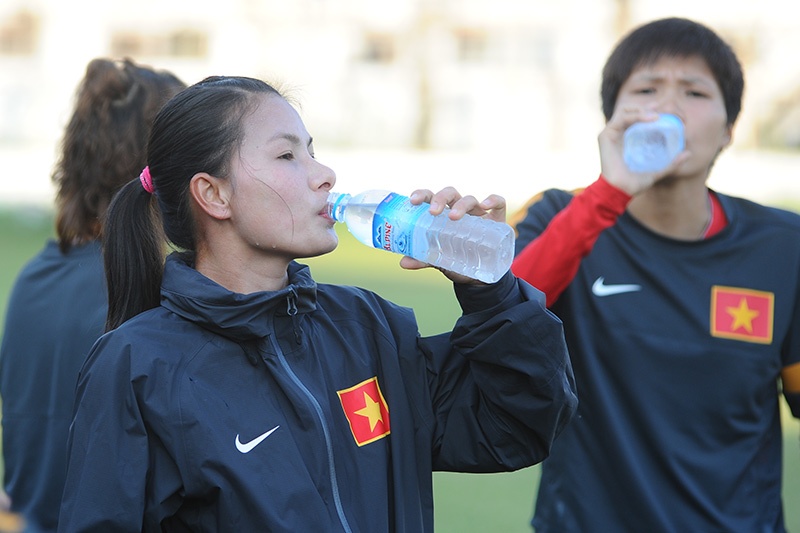 Thời tiết oi bức khiến các cô gái vàng liên tục phải tiếp nước. Trận chung kết bóng đá nữ SEA Games 27 sẽ diễn ra vào hồi 19h30 giờ địa phương tức 20h giờ VN tại SVĐ thành phố Mandalay, Myanmar, được Zing.vn tường thuật trực tiếp.