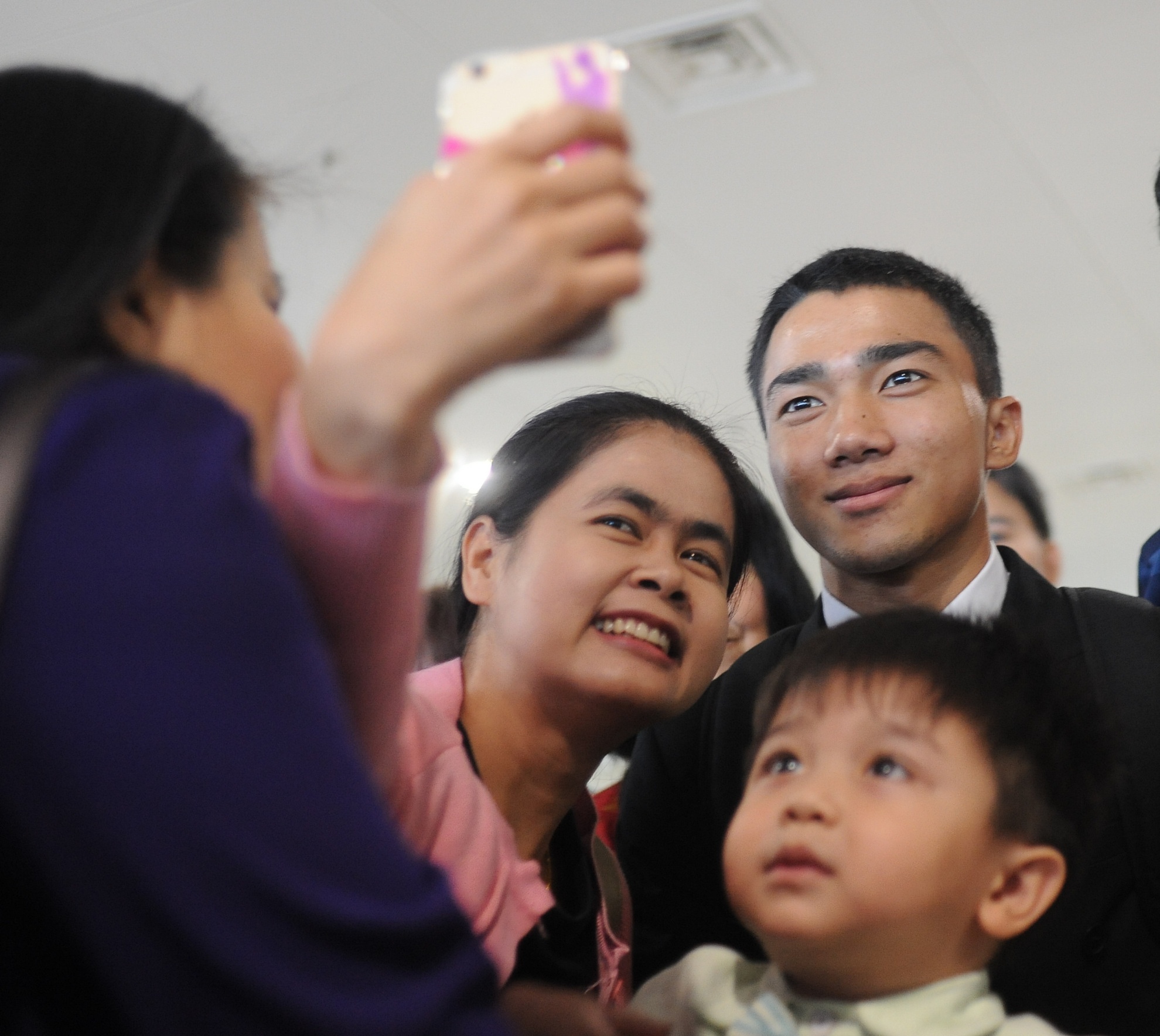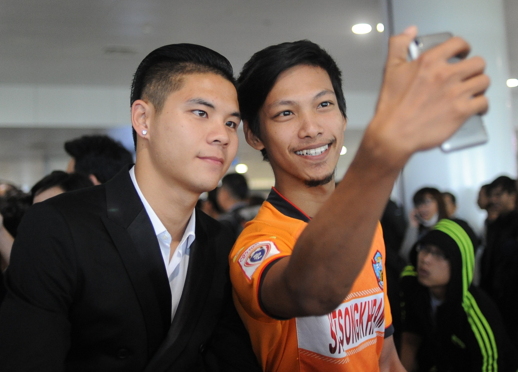 | Tuyển thủ Thái Lan thân thiện chụp ảnh cùng người hâm mộ nước nhà. |
