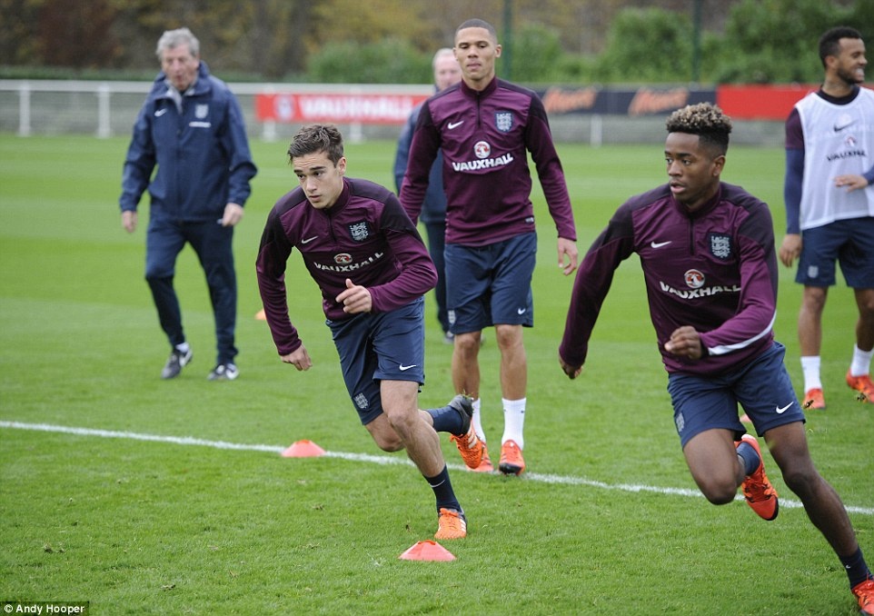 | Trung vệ Eric Dier (thứ hai từ trái sang) mới một lần khoác áo "Tam sư". Cầu thủ 21 tuổi của Tottenham thi đấu rất ấn tượng tại giải năm nay. Anh ra sân 8 trận tại Premier League và ghi 2 bàn thắng. |