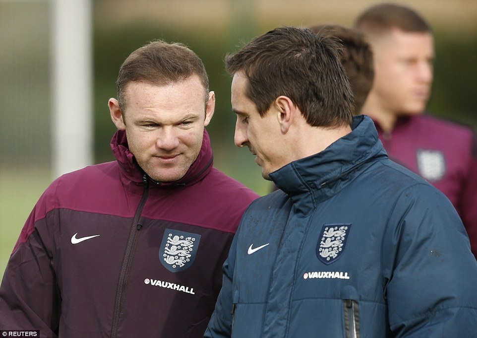 | Thủ quân Wayne Rooney chia sẻ cùng trợ lý huấn luyện viên Gary Neville. Trong trận giao hữu với Tây Ban Nha cuối tuần qua, "Gã Shrek" ngồi dự bị do không có thể lực tốt nhất. Anh vào sân thay Ross Barkley phút 73 nhưng không thể giúp "Tam sư" tránh khỏi thất bại 0-2. |