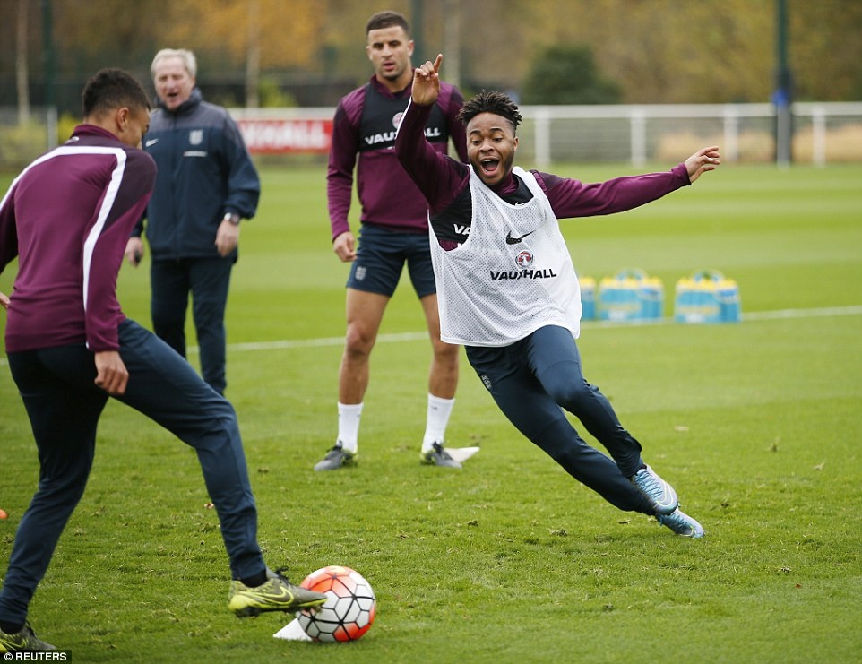| Dù mới 20 tuổi nhưng Raheem Sterling (áo tập trắng) từng có 18 lần khoác áo tuyển Anh và ghi 2 bàn thắng. Sao mai thuộc biên chế Man City hứa hẹn chiếm một suất đá chính trong trận gặp Pháp. |