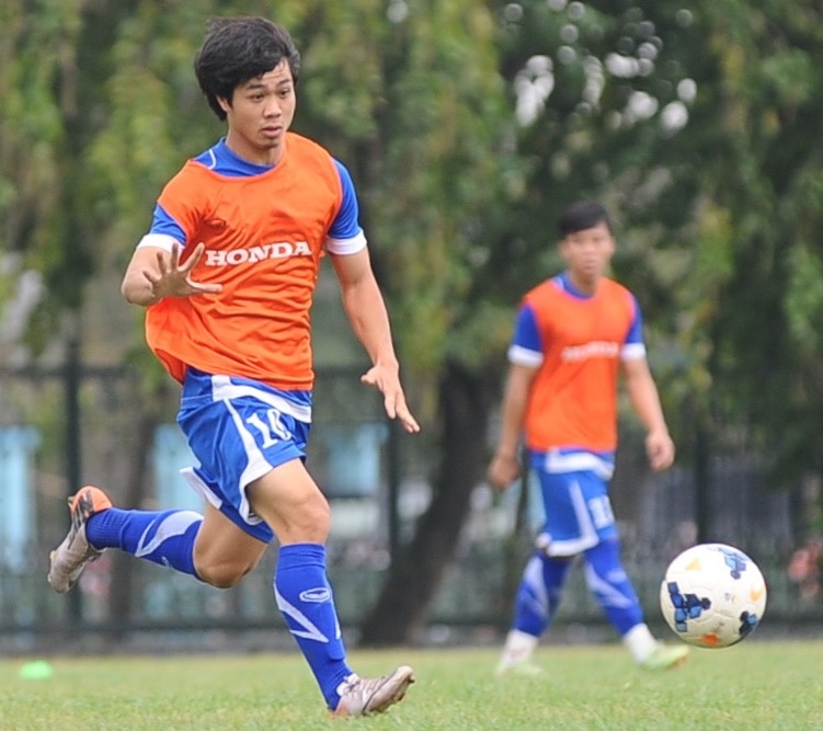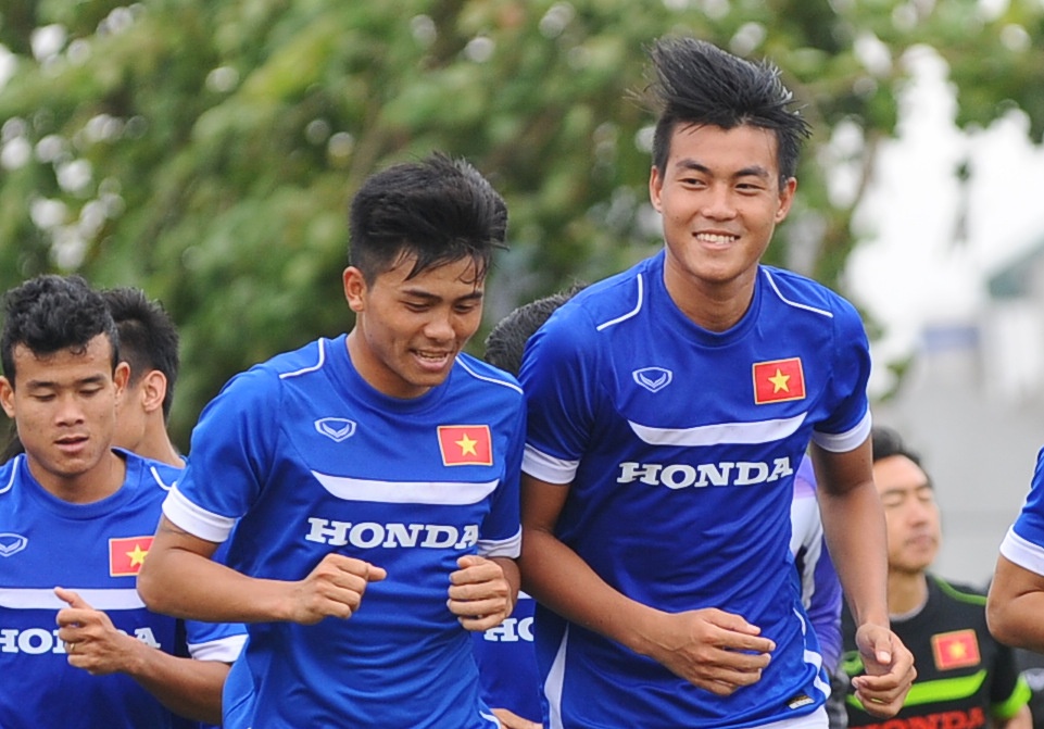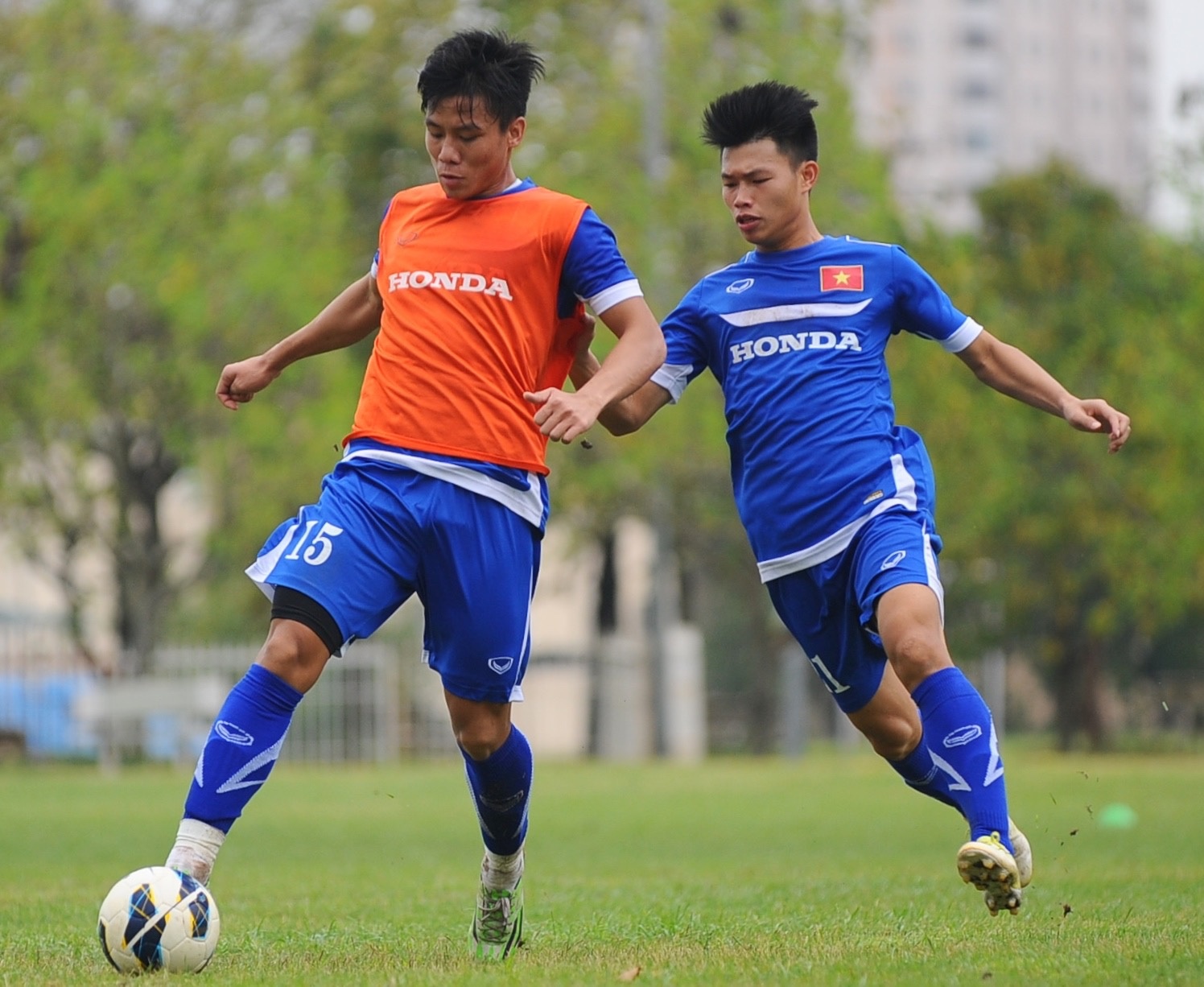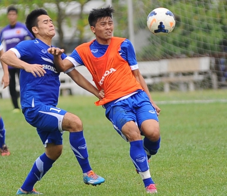 | 2 cầu thủ Phúc Tịnh (trái) và Mạnh Hùng (phải) của lò đào tạo SLNA cũng đang thể hiện những nỗ lực rõ rệt nhằm tìm suất đá chính trong đội hình của HLV Miura. |