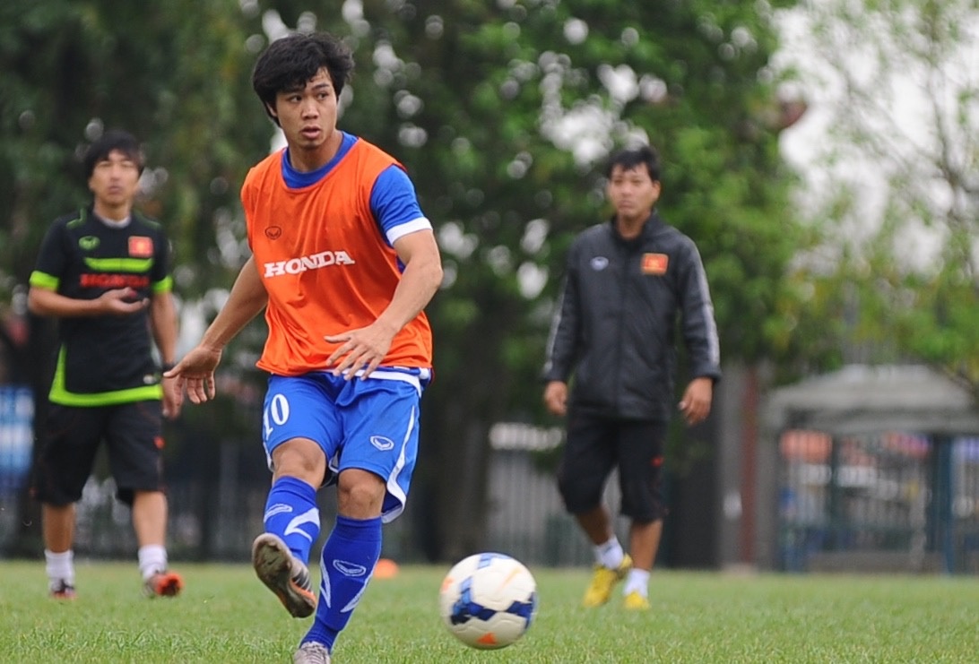 | Công Phượng tự tin kiểm soát bóng khi được HLV Miura bố trí đá cặp tiền đạo cùng Văn Toàn.