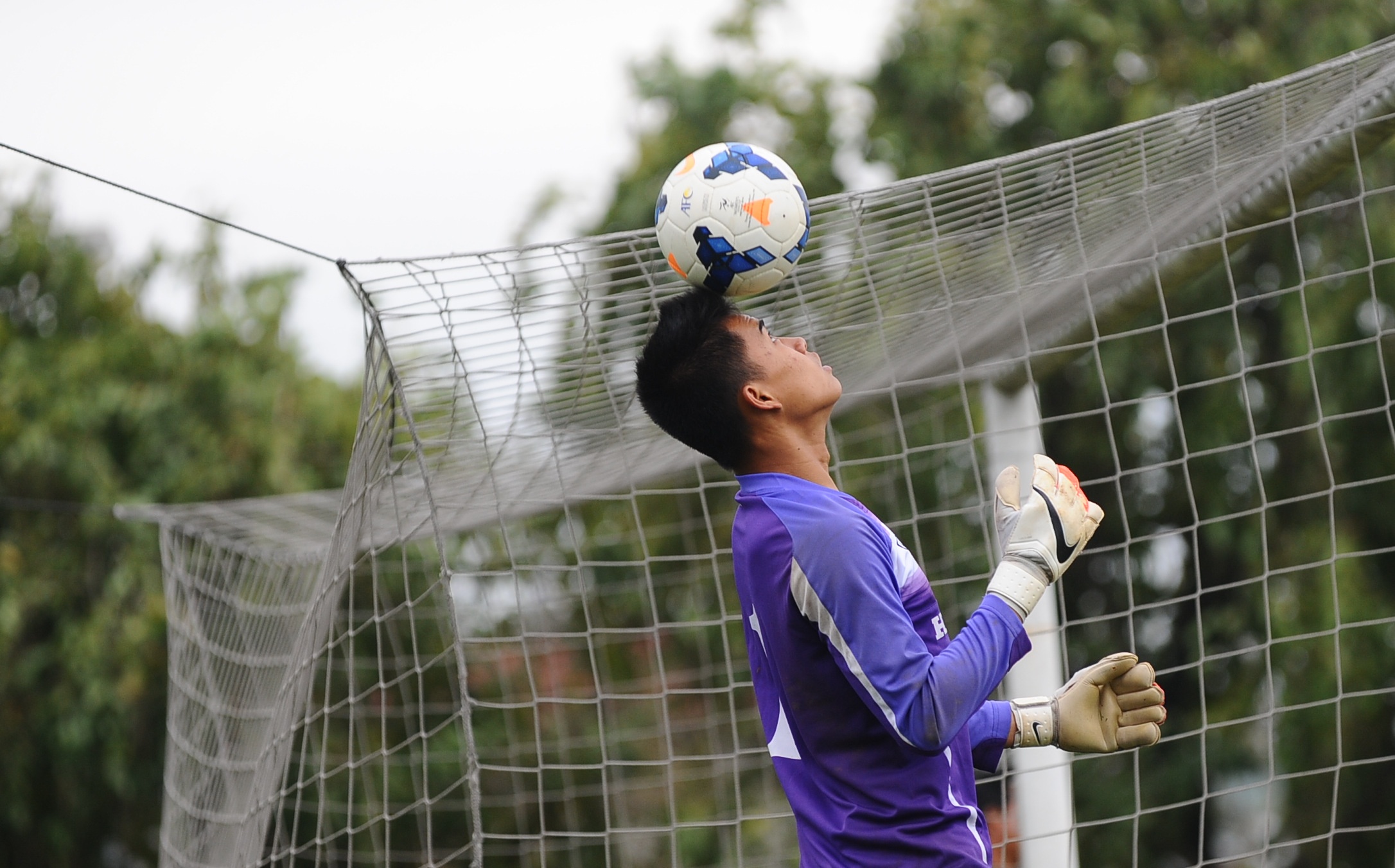| Pha khống chế bóng ngẫu hứng của thủ môn Văn Tiến. |