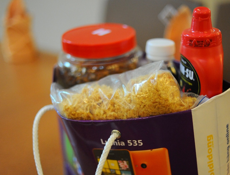| Các thành viên trong đội phải mang thêm ruốc thịt, tương ớt và cá khô rim mắm xuống phòng ăn. |