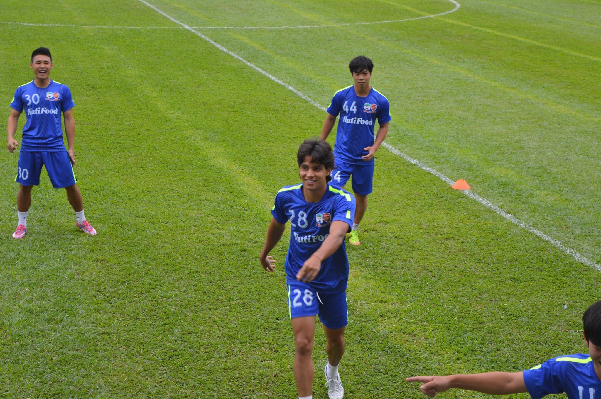 | Morec Mitja trong buổi tập đầu tiên tại Pleiku. Anh chơi ở vị trí trung vệ và sẽ được HLV Graechen bố trí đá cặp cùng Đông Triều. |