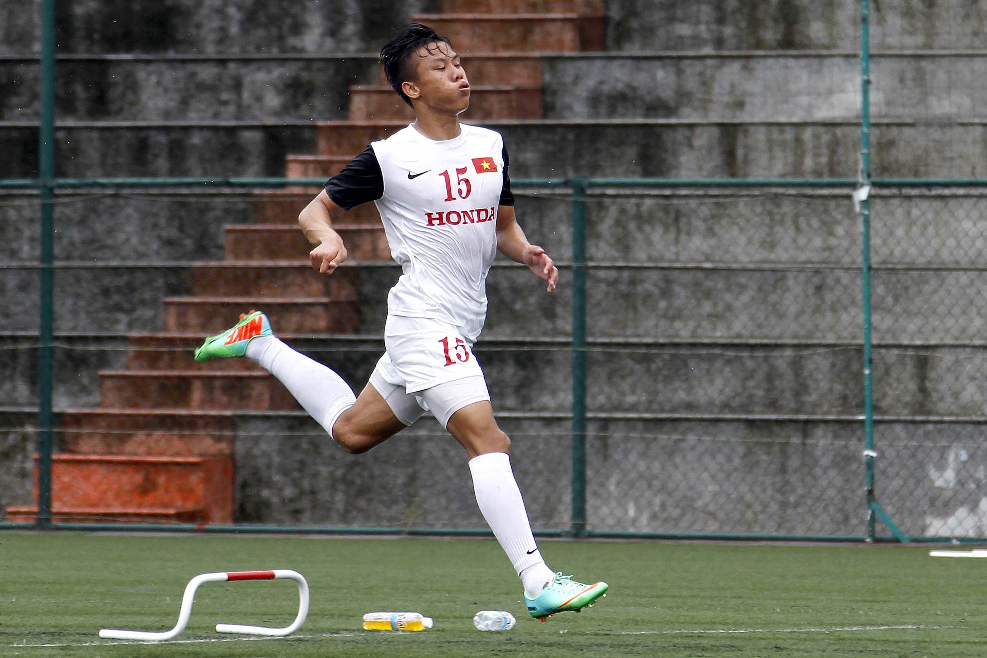 Trước đó các tuyển thủ đã có nhiều buổi tập luyện mỗi ngày hai trận với sự tham gia của trợ lý huấn luyện viên Đặng Phương Nam (áo xanh). Chương trình tập huấn đã bắt đầu từ hôm 23/8 tại sân Trung tâm đào tạo bóng đá trẻ Việt Nam (Hà Nội).