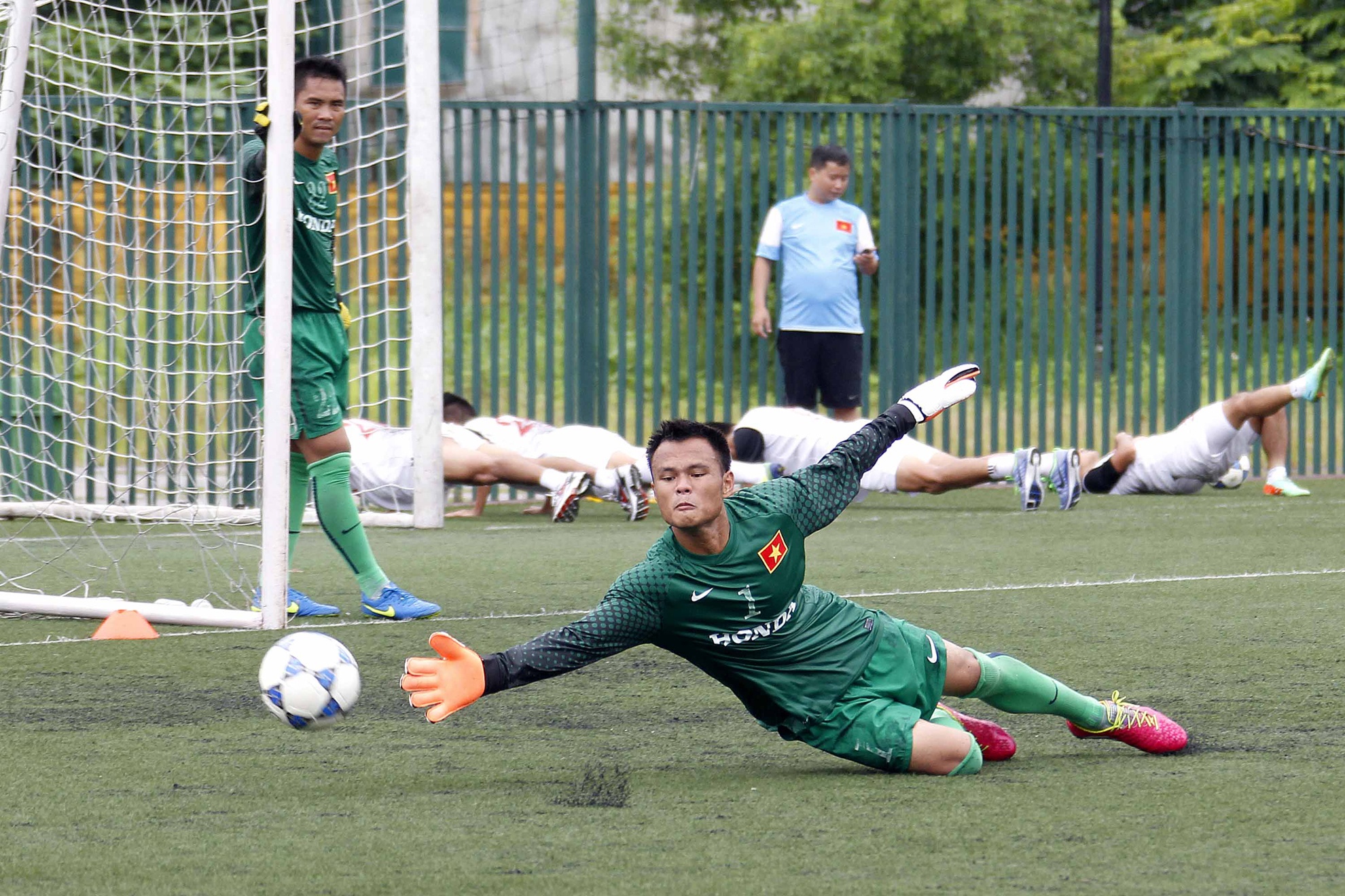 | Và những người trấn giữ khung thành cũng có cái tên tưởng như mới nhưng lại quen. Thủ môn Nguyễn Thanh Bình (SHB Đà Nẵng) cùng hai gương mặt khác là Tô Vĩnh Lợi và Trần Nguyên Mạnh từng được gọi lên tuyển nhiều lần nhưng chỉ đóng vai trò dự bị, lần này các anh được thi thố để tranh một suất bắt chính. |
