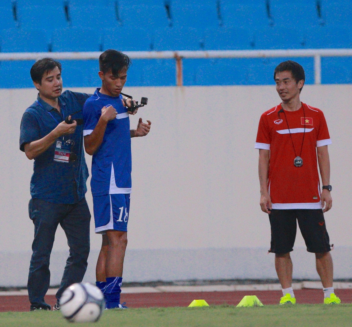 Tuy nhiên, trước khi bước vào màn khớp đội hình, rèn chiến thuật chuẩn bị cho trận đấu với Iraq, một số tuyển thủ Việt Nam được đeo thiết bị ghi hình chuyên dụng. Phi Sơn, Ngọc Thắng và một số trợ lý của ĐTVN đeo thiết bị này trên ngực theo hướng dẫn của một kỹ thuật viên.