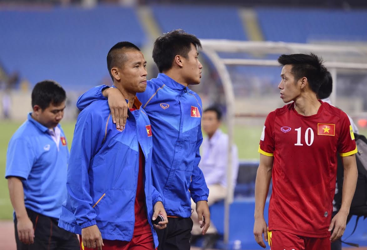 | Tiền đạo thủ quân Công Vinh không thể giúp tuyển Việt Nam có kết quả tốt trước Thái Lan. Anh cũng không giấu được nỗi buồn khi rời sân. |