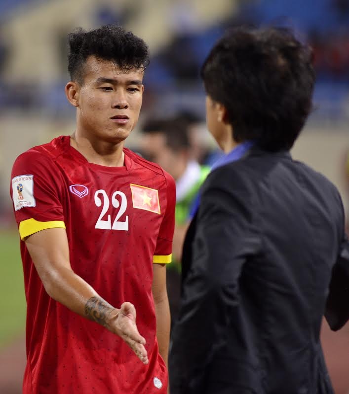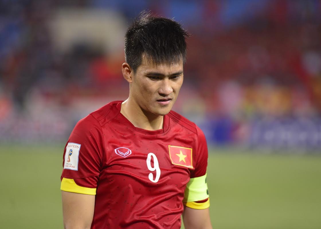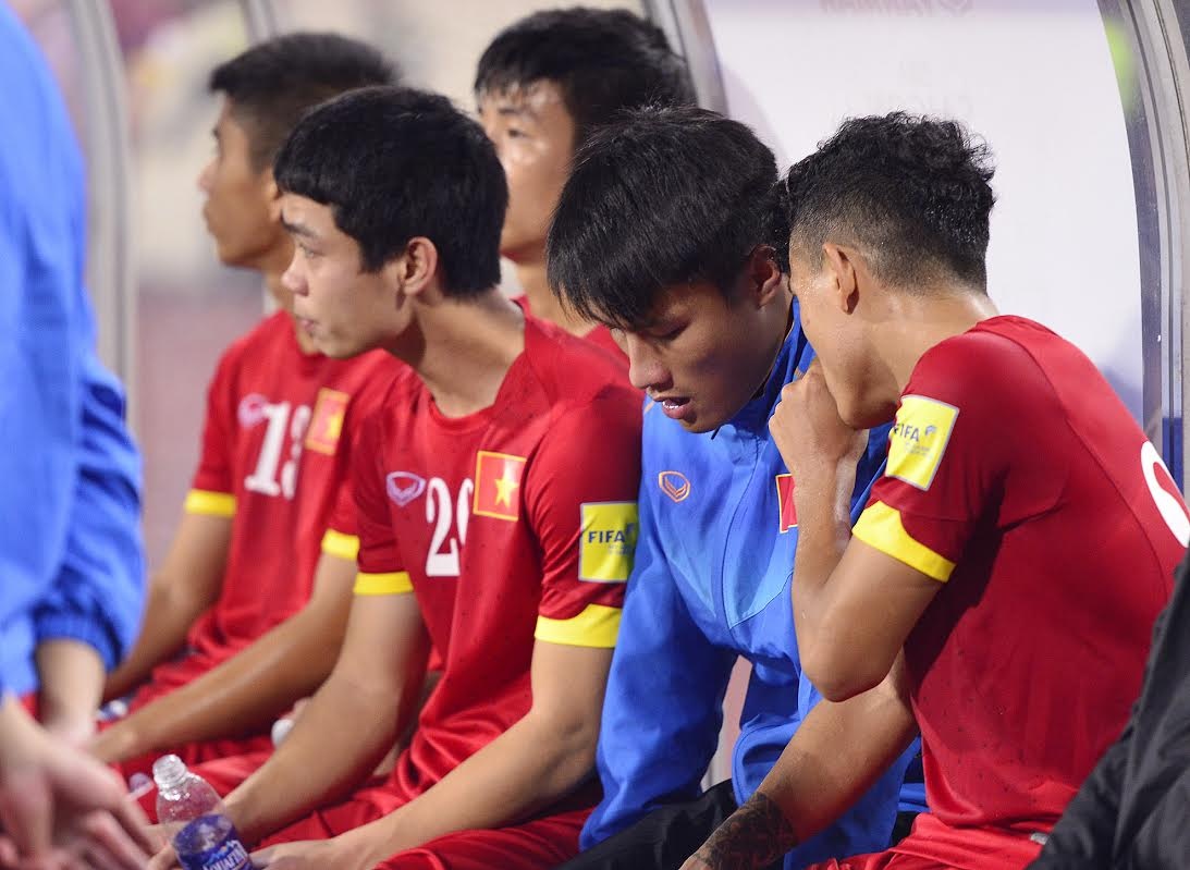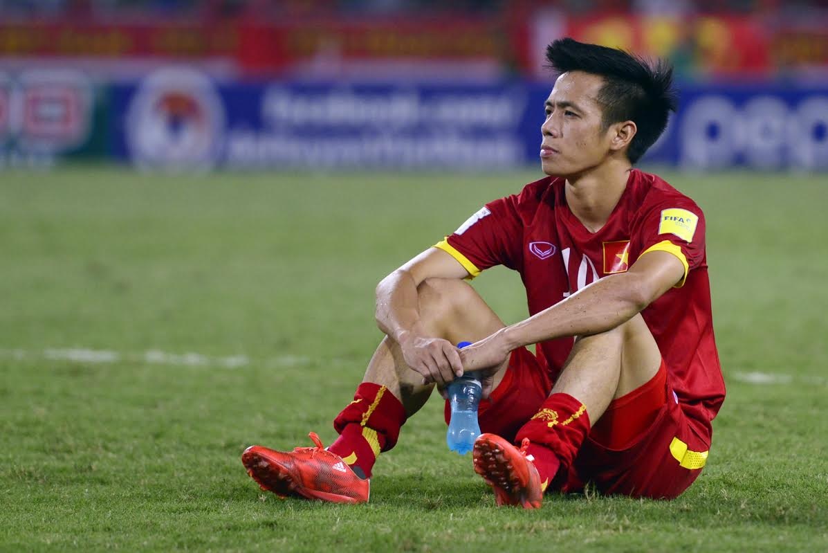 | Tiền đạo Văn Quyết thi đấu từ đầu trận, nhưng cũng không thể giúp tuyển Việt Nam có sự đột biến trong những pha tấn công. Anh nhìn đăm chiêu sau khi đội nhà thua 3 bàn không gỡ. |