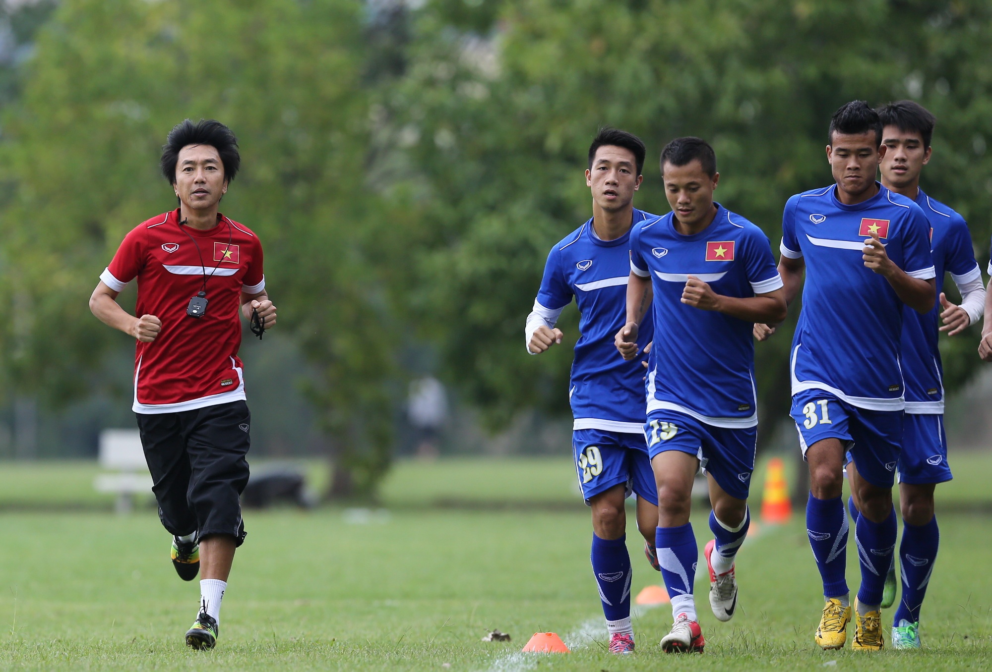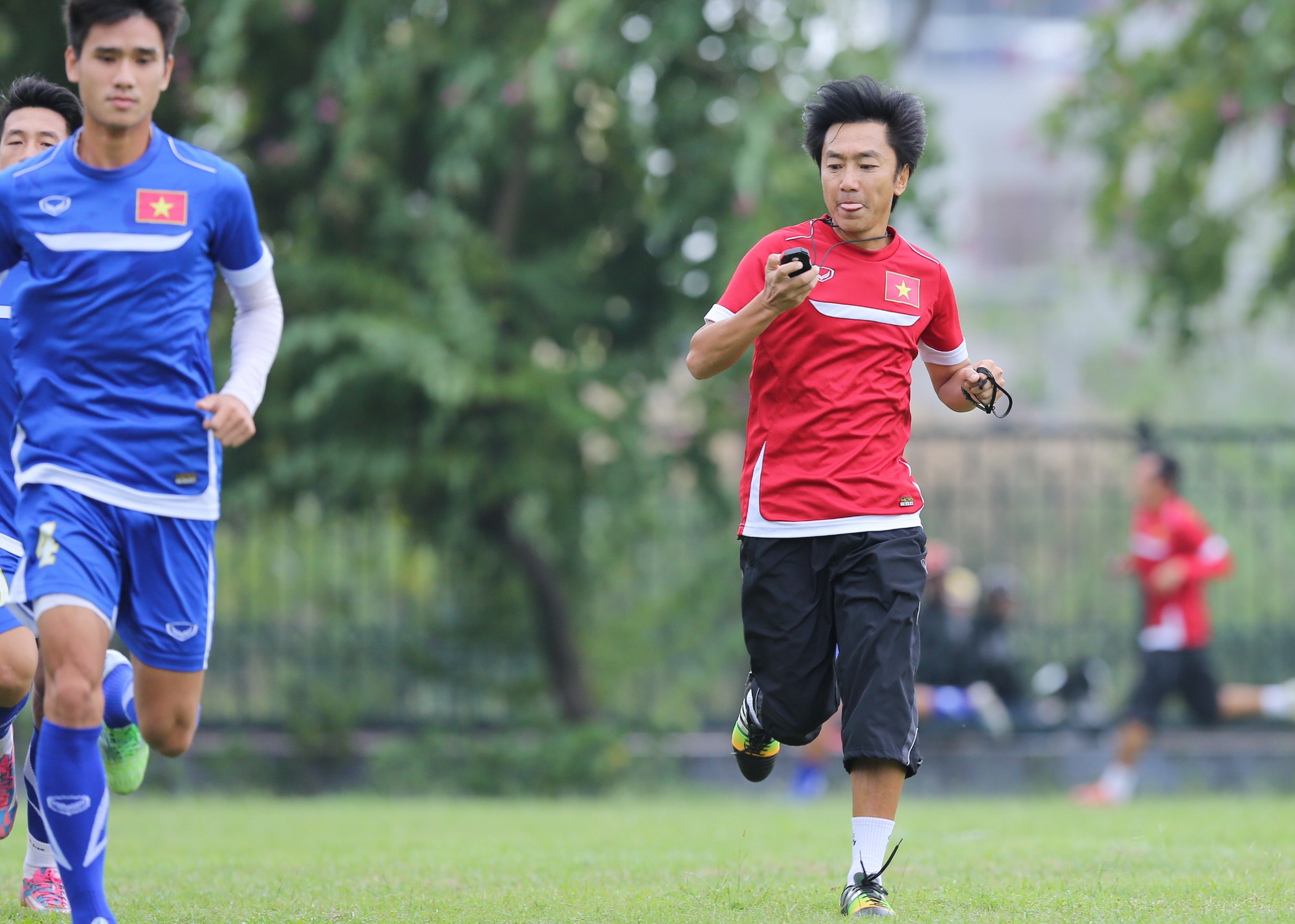 | HLV Miura theo dõi sát sao tình trạng thể lực của các học trò sau 2 ngày nghỉ xả hơi để có những điều chỉnh hợp lý trong tập luyện. |
