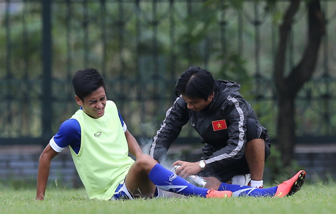| Trong buổi sáng nay, hậu vệ trái Xuân Thành không thể tập luyện cùng toàn đội vị bị tái phát chấn thương dây chằng chân phải. Xuân Thành sẽ phải nghỉ thi đấu ít nhất 5 ngày và nhiều khả năng không kịp bình phục để ra quân trong trận bán kết lượt đi cùng ĐTVN. |