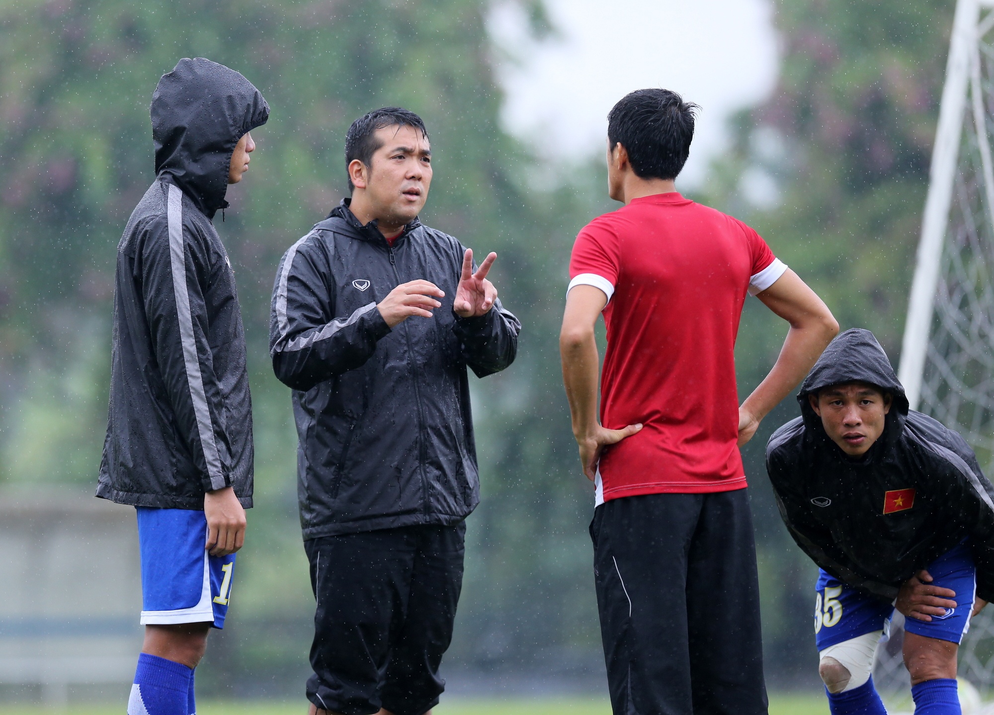 | Dưới tiết trời Hà Nội 18 độ C kèm theo mưa, gió rét, HLV Miura cười tươi và hài lòng với sự nỗ lực tập luyện của các học trò. HLV người Nhật Bản đã quên đi sự khó chịu sau buổi tập ngày hôm qua (1/12). |