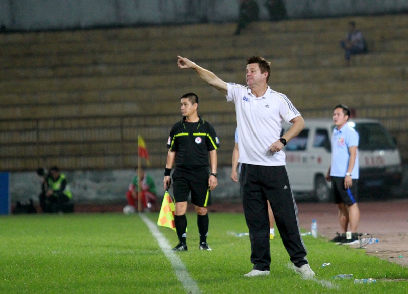 | Chỉ còn 10 người trên sân nhưng HLV Dylan Kerr vẫn yêu cầu các học trò tấn công. |