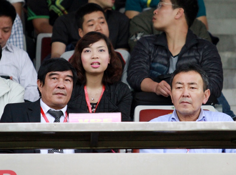 | Tân PCT phụ trách truyền thông của VFF Nguyễn Xuân Gụ và trưởng BTC V.League Tanaka Koji tới dự khán trận đấu giữa Hải Phòng và HAGL. |