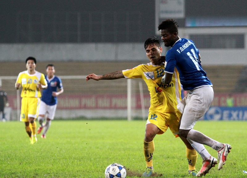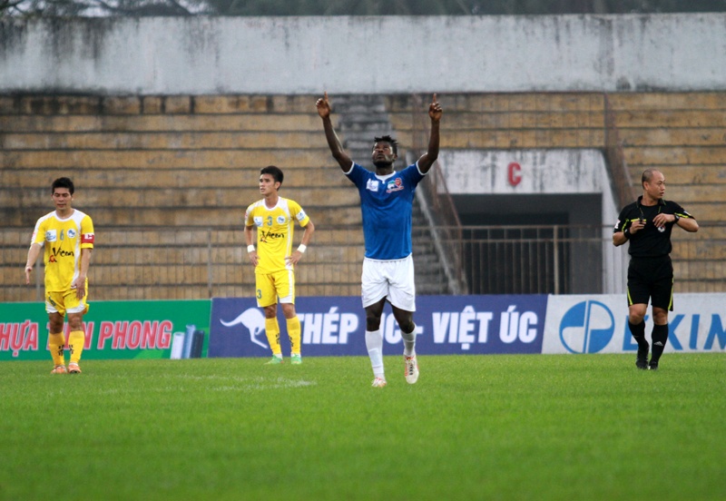 | Tuy nhiên, trong khi chưa tìm được bàn thắng thì mành lưới của Hải Phòng lại bất ngờ rung lên. Felix dứt điểm chân trái hiểm hóc mang về bàn mở tỷ số cho HAGL ở phút 15. |
