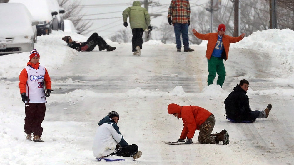 Nhiều người trẻ xuống đường nô đùa và nghịch tuyết bất chấp thời tiết lạnh giá. Ảnh: Roanoke Times |
