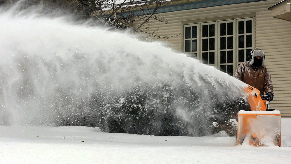 Một người sử dụng máy để dọn tuyết khỏi lối đi ở Blacksburg, Virginia. Ảnh: Roanoke Times |