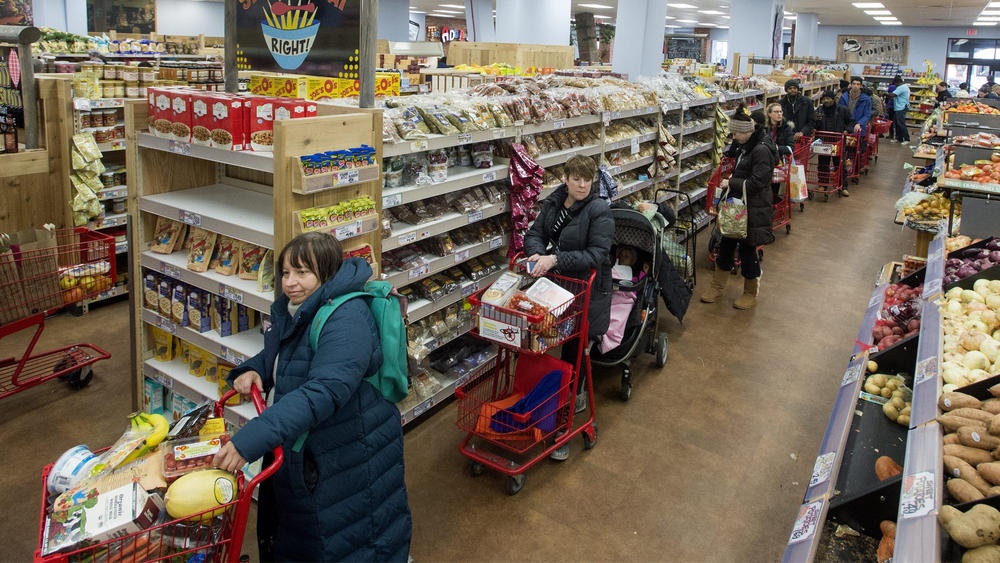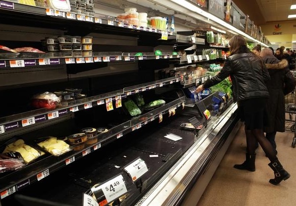 Người dân thủ đô Washington xếp hàng một siêu thị để chờ thanh toán. Nhiều người mua nhiều đồ về tích trữ để khỏi phải ra ngoài trong thời tiết lạnh giá. Ảnh: Chicago Tribune |