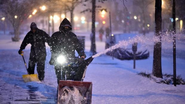 Công nhân dọn tuyết trên đường phố ở thủ đô Washington DC ngày 22/1. Người dân sống tại khu vực trải dài từ bang Bắc Carolina tới New York đã được yêu cầu ở trong nhà, hạn chế đi lại, tích trữ đồ ăn và các nhu yếu phẩm khác. Ảnh: AFP |