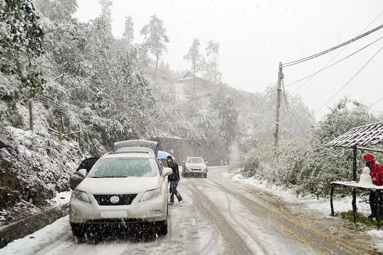 Biết tin có tuyết rơi, rất nhiều du khách tại thị trấn Sa Pa và thành phố Lào Cai đã di chuyển về khu vực Ô Quý Hồ, Trạm Tôn để ngắm tuyết khiến giao thông bị ách tắc nghiêm trọng.