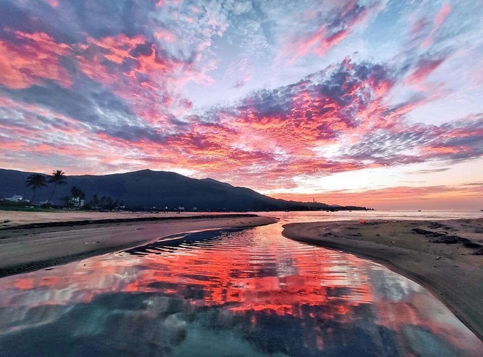 Đà Nẵng là một trong những thành phố có nhiều tiềm năng du lịch ở Việt Nam. Được thiên nhiên ưu ái, ban tặng cảnh quan hoang sơ, mỗi bãi biển ở đây mang một vẻ đẹp riêng và đem đến những cảm nhận khác nhau cho du khách. Trong đó, ngắm bình mình trên biển Đà Nẵng là trải nghiệm khó lòng bỏ qua trong hành trình khám phá vẻ đẹp của thành phố này. Trước khi mặt trời ló rạng, mặc dù sóng vẫn vỗ không ngớt vào bờ cát, trời đất trông có vẻ thật tĩnh lặng. Tuy nhiên, chỉ vài phút sau, du khách sẽ nhanh chóng phát hiện một vệt hồng hửng lên phía chân trời. Vệt sáng ấy lớn dần lên, lan khắp bầu trời. Mặt biển lấp lánh những chiếc vảy màu hồng, các mảng sáng tối đan xen, càng xa càng nhạt dần. Biển, bãi cát, những ngôi nhà, rặng cây, đều chìm trong bầu ánh sáng hồng đó. Cảnh tượng như một bức tranh được điểm tô cẩn thận từng màu sắc. Mặt trời càng lên cao, màu hồng giảm đi cho đến khi chỉ còn một mảng chói sáng phía xa. Biển thức dậy hoàn toàn, càng lúc càng xanh thăm thẳm. Khung cảnh thiên nhiên khiến du khách khó lòng rời mắt.