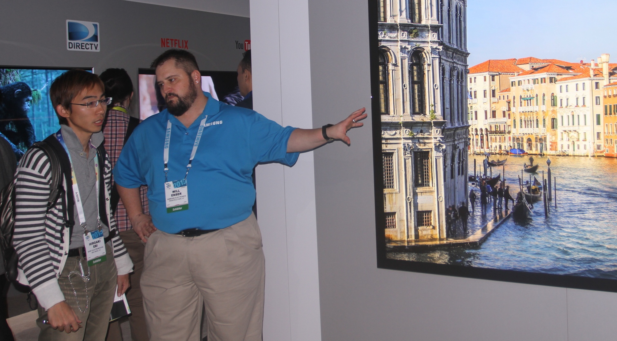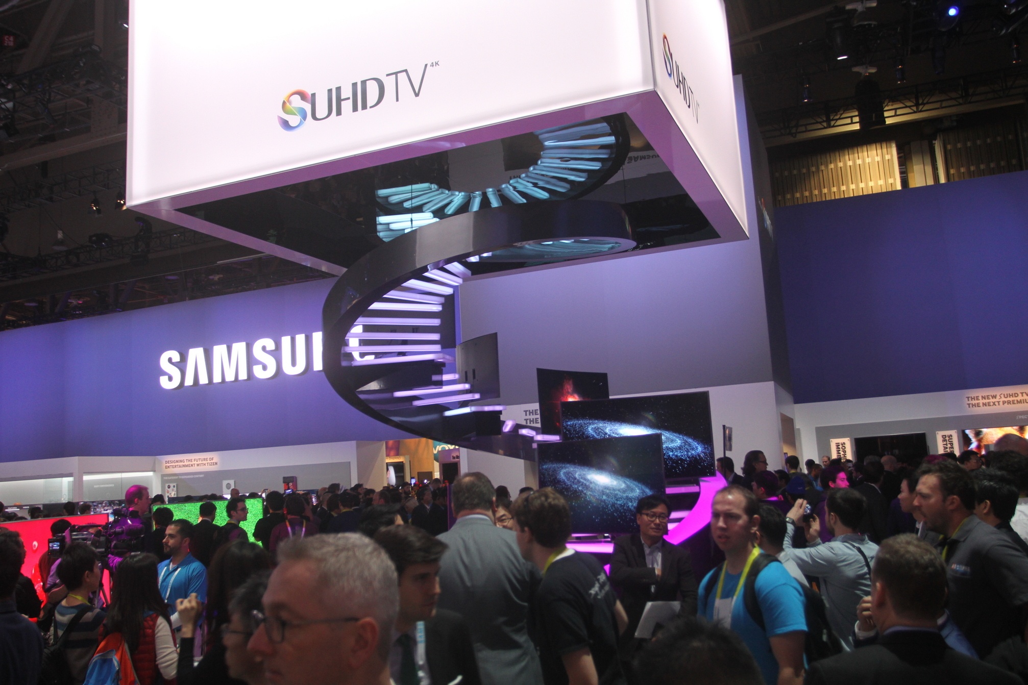 | Samsung gây chú ý trong ngày CES năm nay khai màn bởi loạt TV trong series SUHD của mình. Ngoài công nghệ màn hình mới, hãng này vẫn giữ các kích thước và thay đổi nhẹ ở thiết kế. Do đó, sự có mặt của mẫu TV bí mật được họ giữ kín đến khi CES 2015 khai màn tạo sự thu hút hơn cả. |