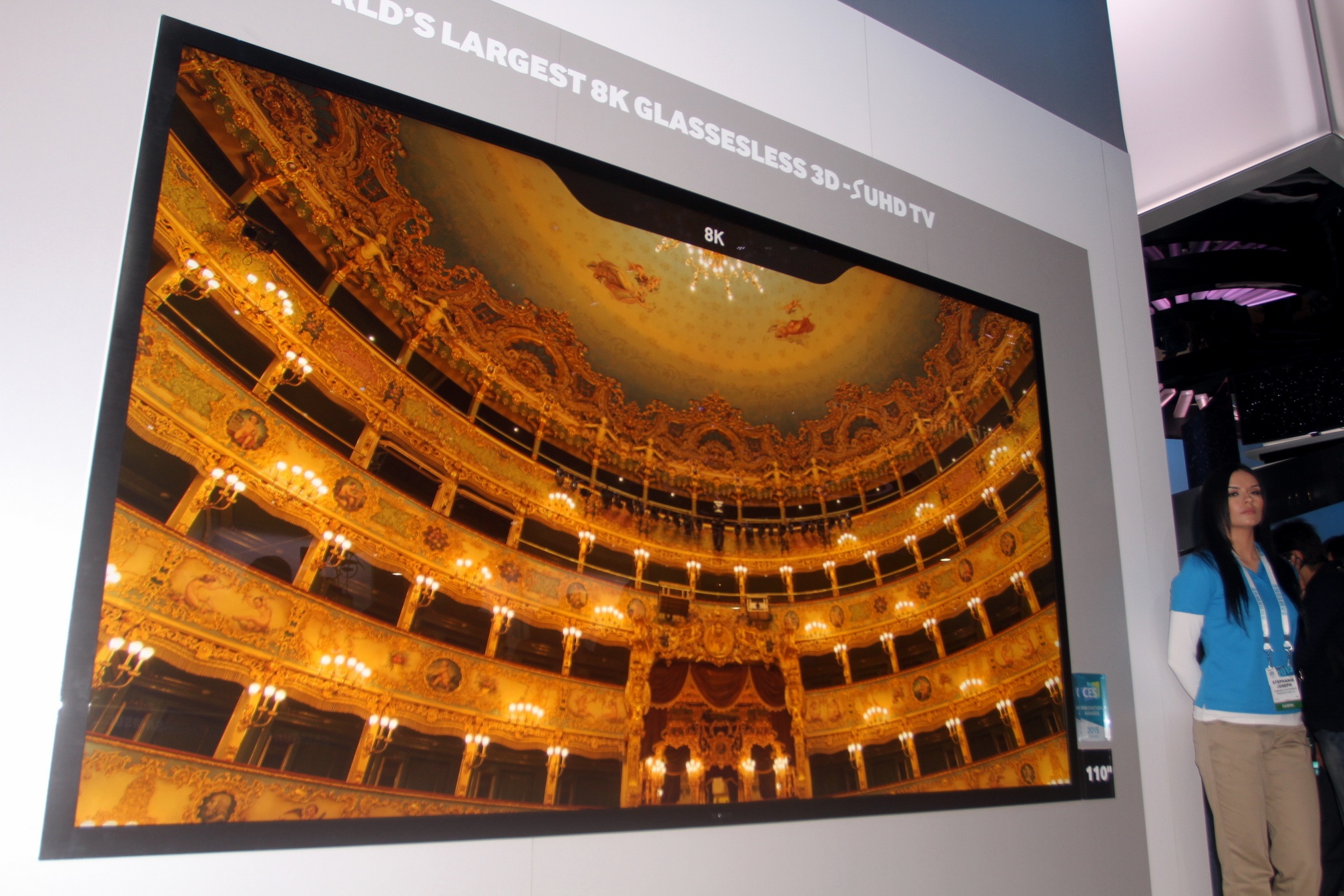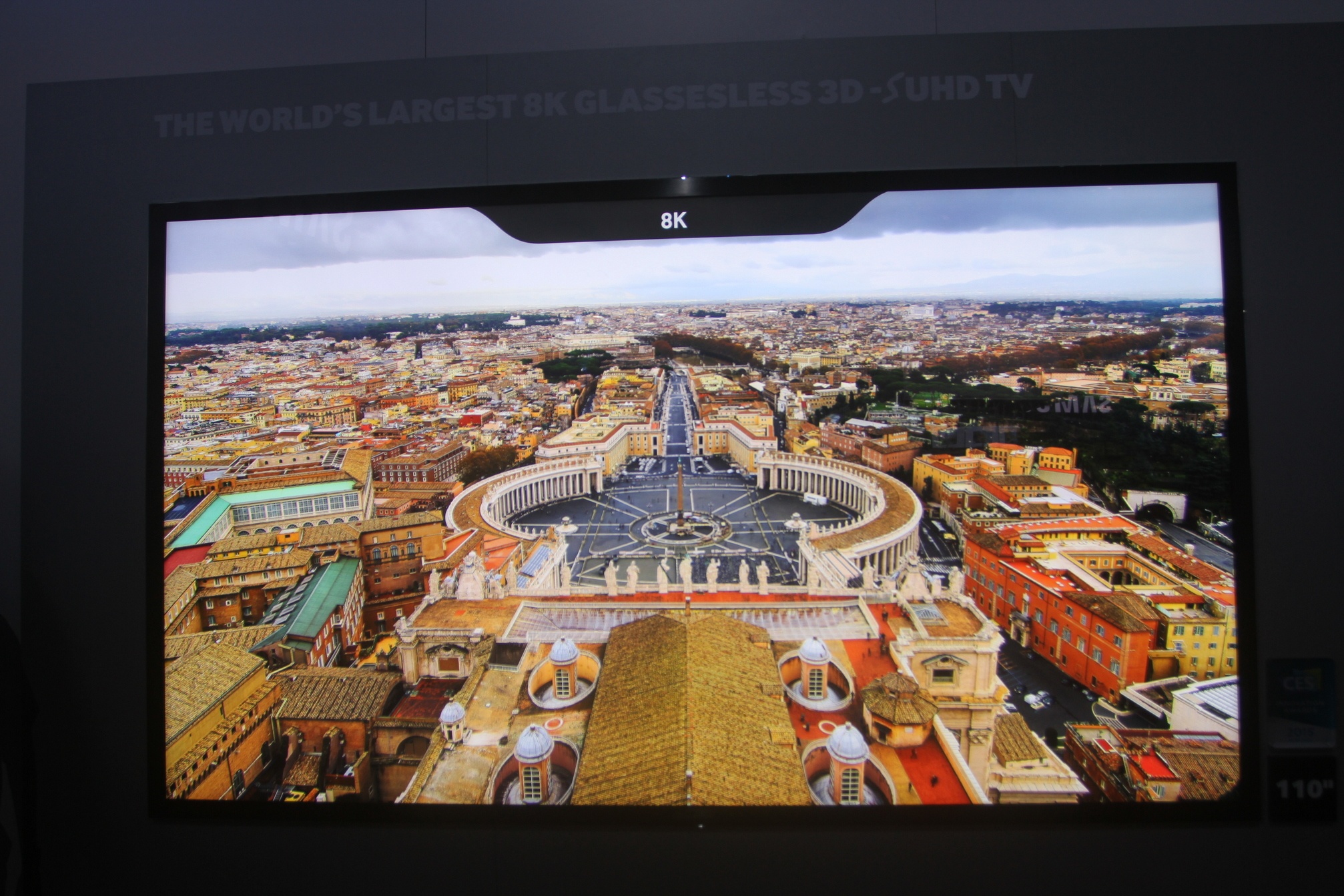 | Chiếc TV này được Samsung gọi là sản phẩm 8K có màn hình 3D không kính lớn nhất thế giới. Nó vẫn là model thử nghiệm, không có màn hình cong, nhưng khả năng hiển thị màu sắc tốt với SUHD, độ chi tiết của chuẩn 8K và công nghệ 3D nhìn bằng mắt thường lập tức tạo sự chú ý. |