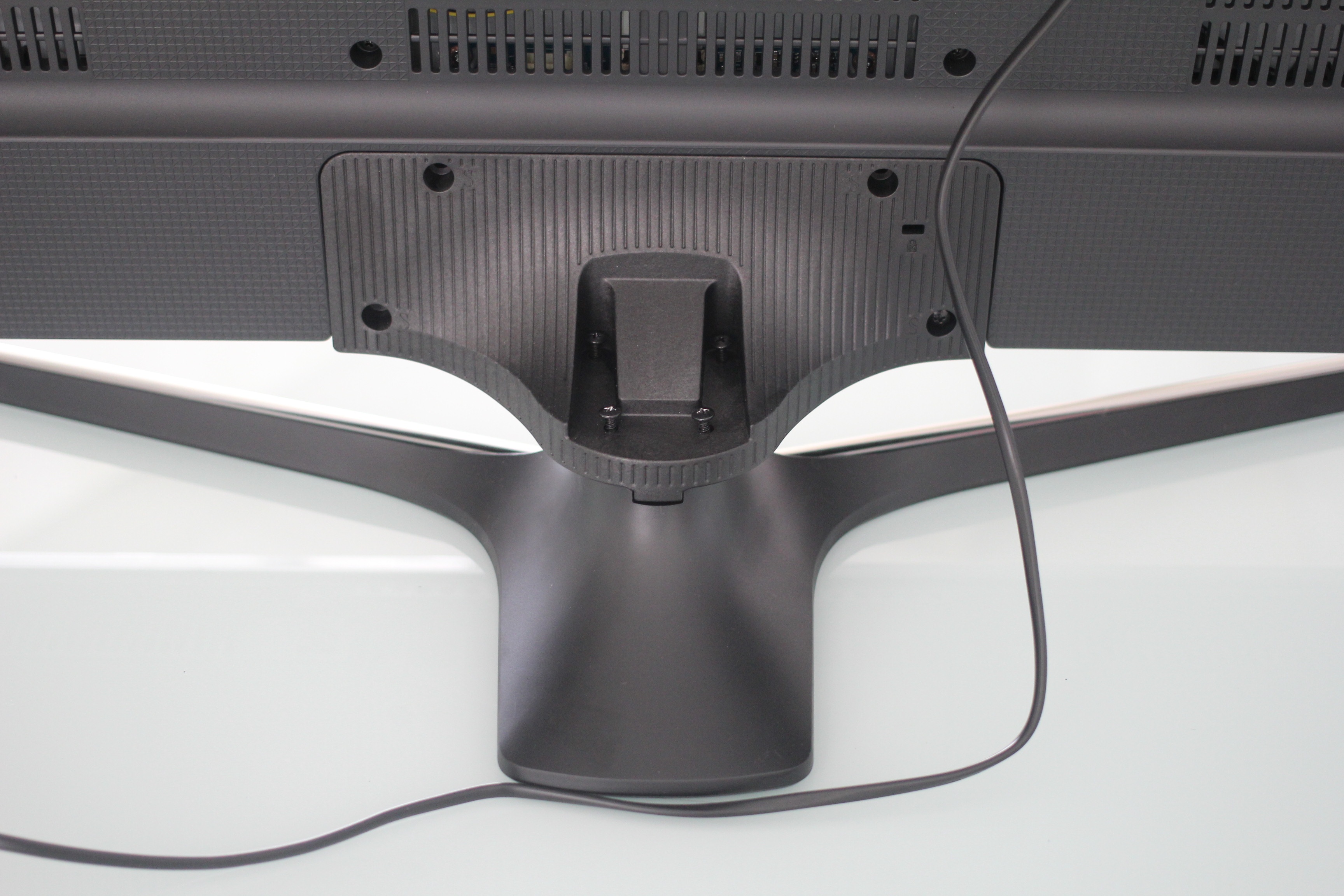 | Phần chân máy làm bằng kim loại, tương tự dòng TV màn hình cong của hãng. |