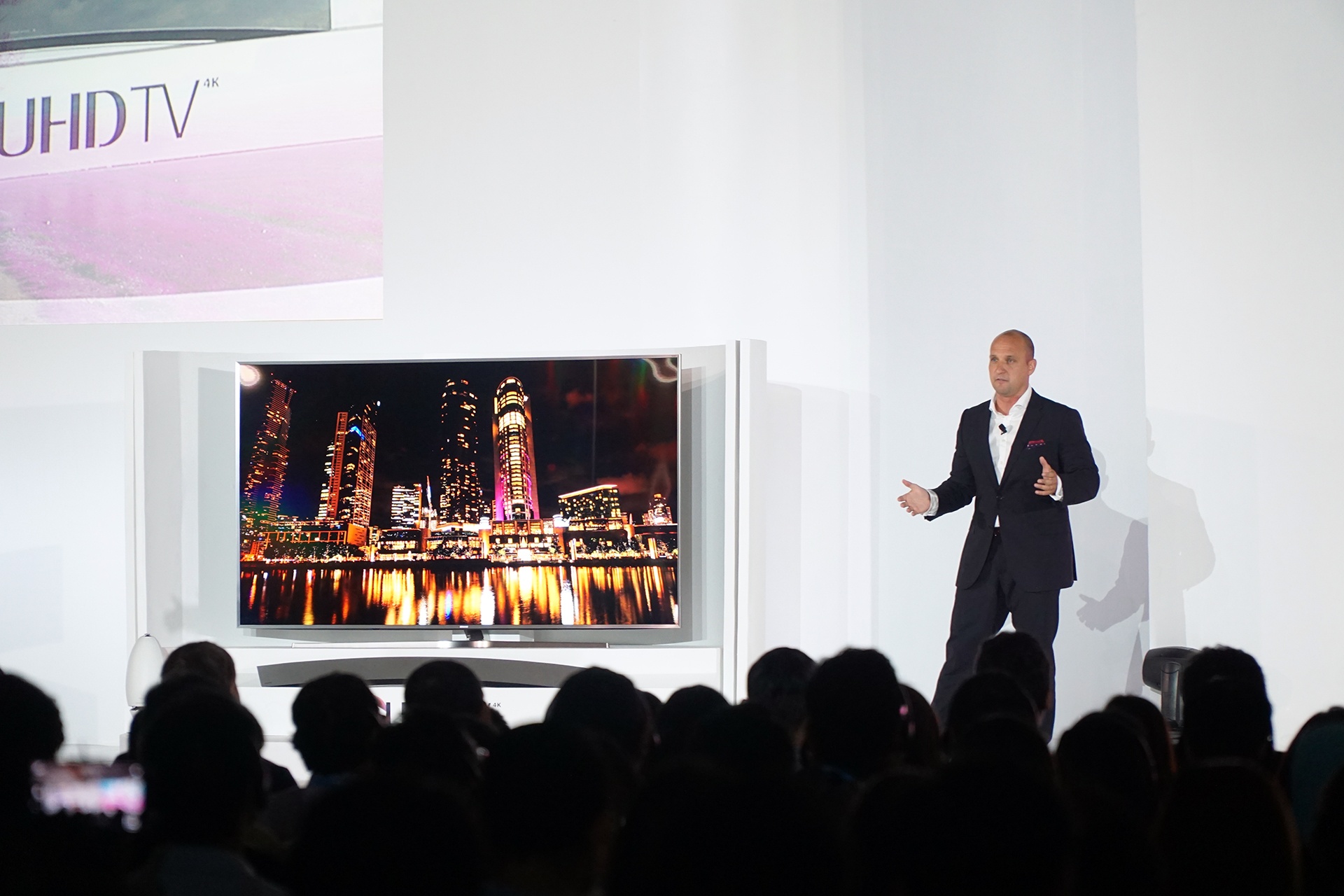 | Điểm sáng của sự kiện này là thế hệ Smart TV mới chạy trên hệ điều hành Tizen mà Samsung gọi là "SUHD TV". |
