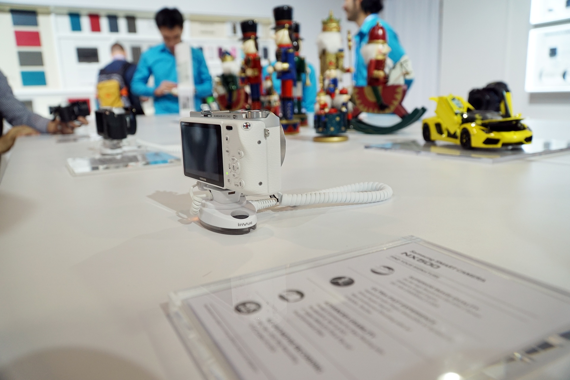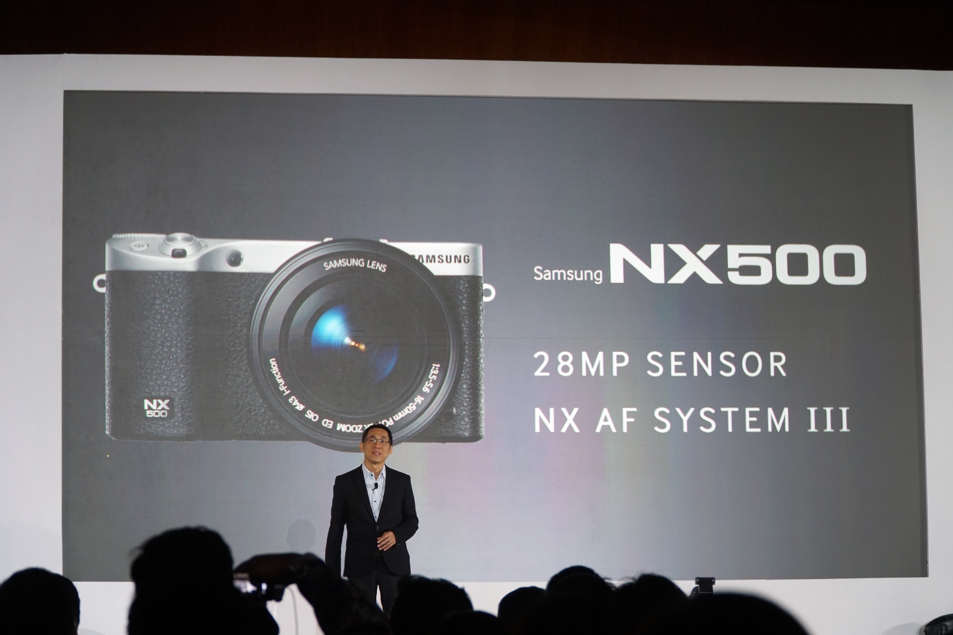 | Samsung cũng mang đến chiếc máy ảnh không gương lật nhỏ gọn mới mang tên NX500. Trước đó, model này đã có mặt tại CES 2015. |