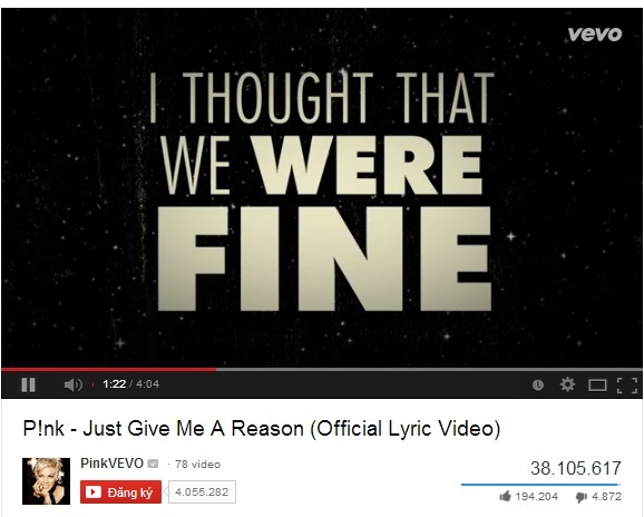 | Lyric video “Just give me a reason” - Pink nhận được lượt view khủng với hình thức chạy chữ Typography. |
