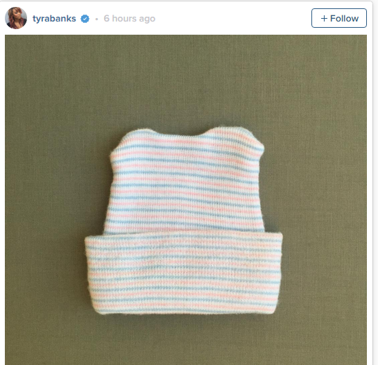 Hôm 27/1, trên trang cá nhân Instagram, Tyra Banks bất ngờ thông báo cô vừa đón con trai đầu lòng với bạn trai là nhiếp ảnh gia Erik Asla. Chân dài chọn có con bằng phương pháp mang thai hộ. Dưới bức ảnh chiếc mũ của bé sơ sinh, mẹ đẻ của America's Next Top Model viết và tiết lộ tên cậu bé.