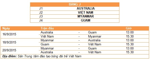 | Lịch thi đấu bảng J, Vòng loại U16 châu Á 2016. |