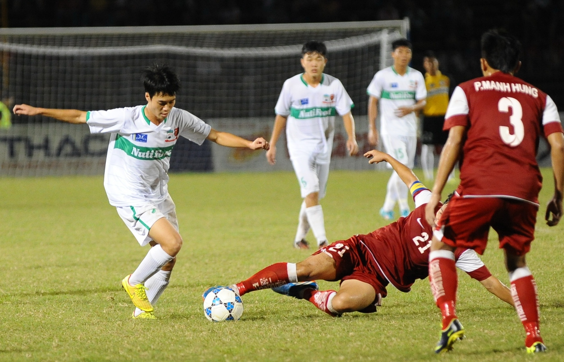 | Công Phượng chưa ghi bàn nhưng đóng vai trò rất quan trọng ở tuyến giữa của U19 HAGL. |