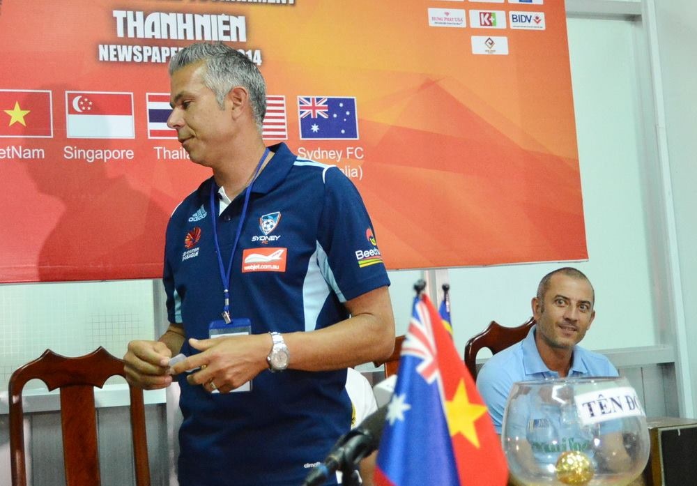 | HLV U21 Sydney buồn bã lắc đầu bỏ đi sau khi thiếu may mắn trong bốc thăm. |